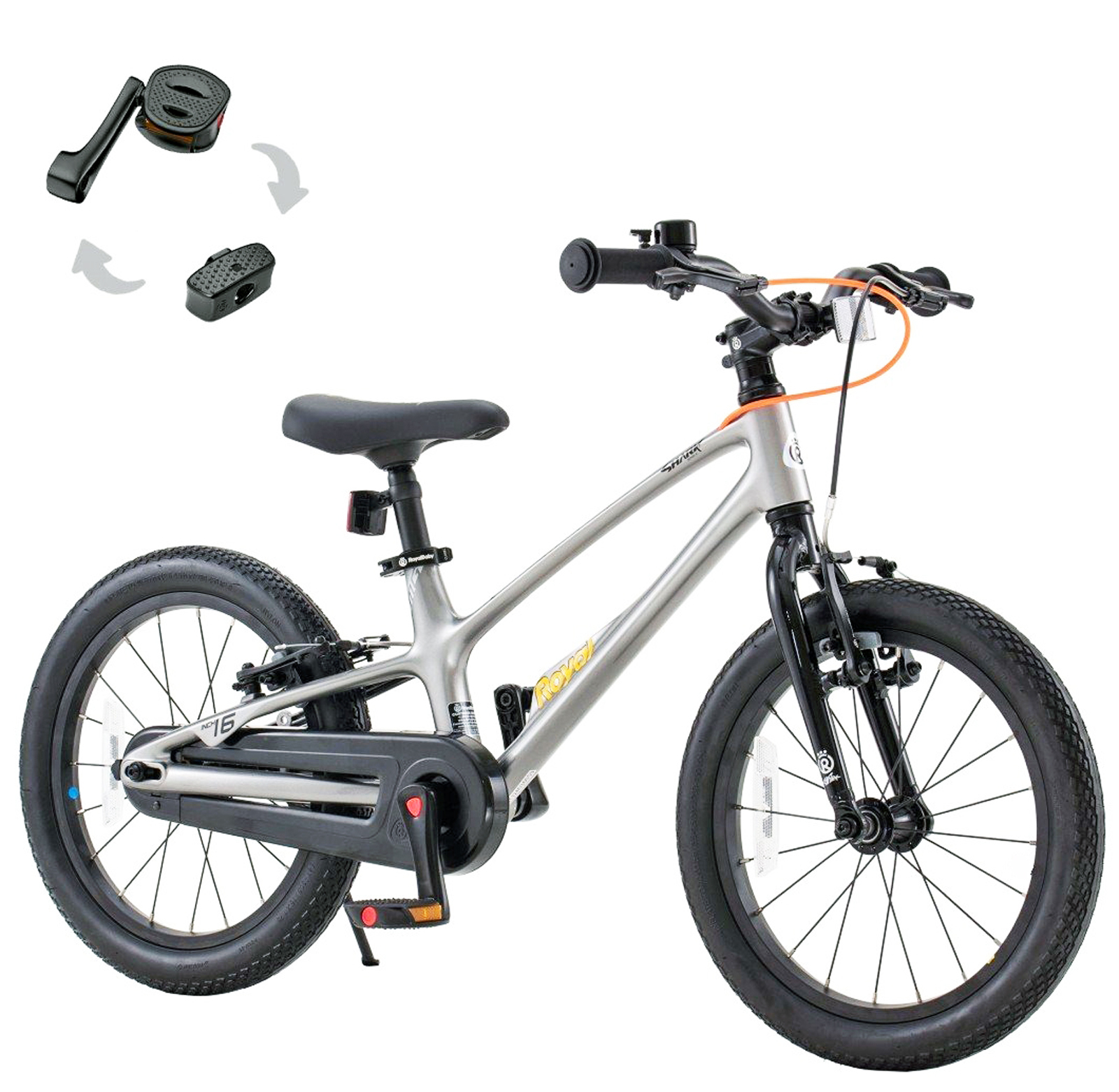Bicicleta copii ultra-usoara 18" ROYAL BABY EZ Space Shark, pedalier detasabil/suport picioare, gri, varsta 5-7 ani