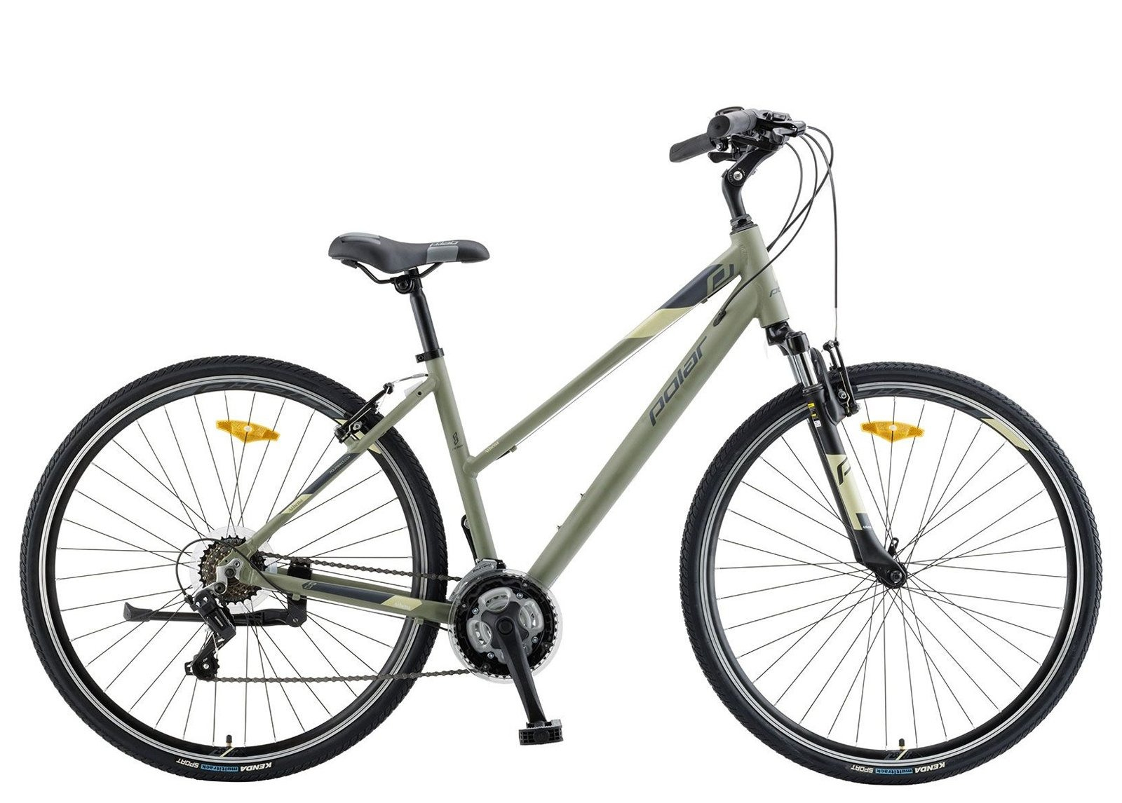 Bicicleta cross-fitness 28" POLAR Athena, cadru aluminiu 18", manete secventiale, frane V-Brake, 21 viteze, verde