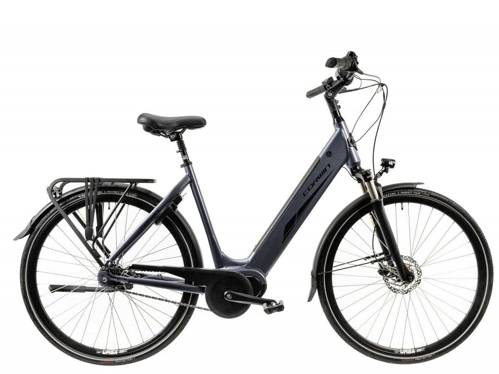 Bicicleta electrica City 28" CORWIN 28426, cadru aluminiu 21", manete revoshift, frane hidraulice, 7 viteze, gri