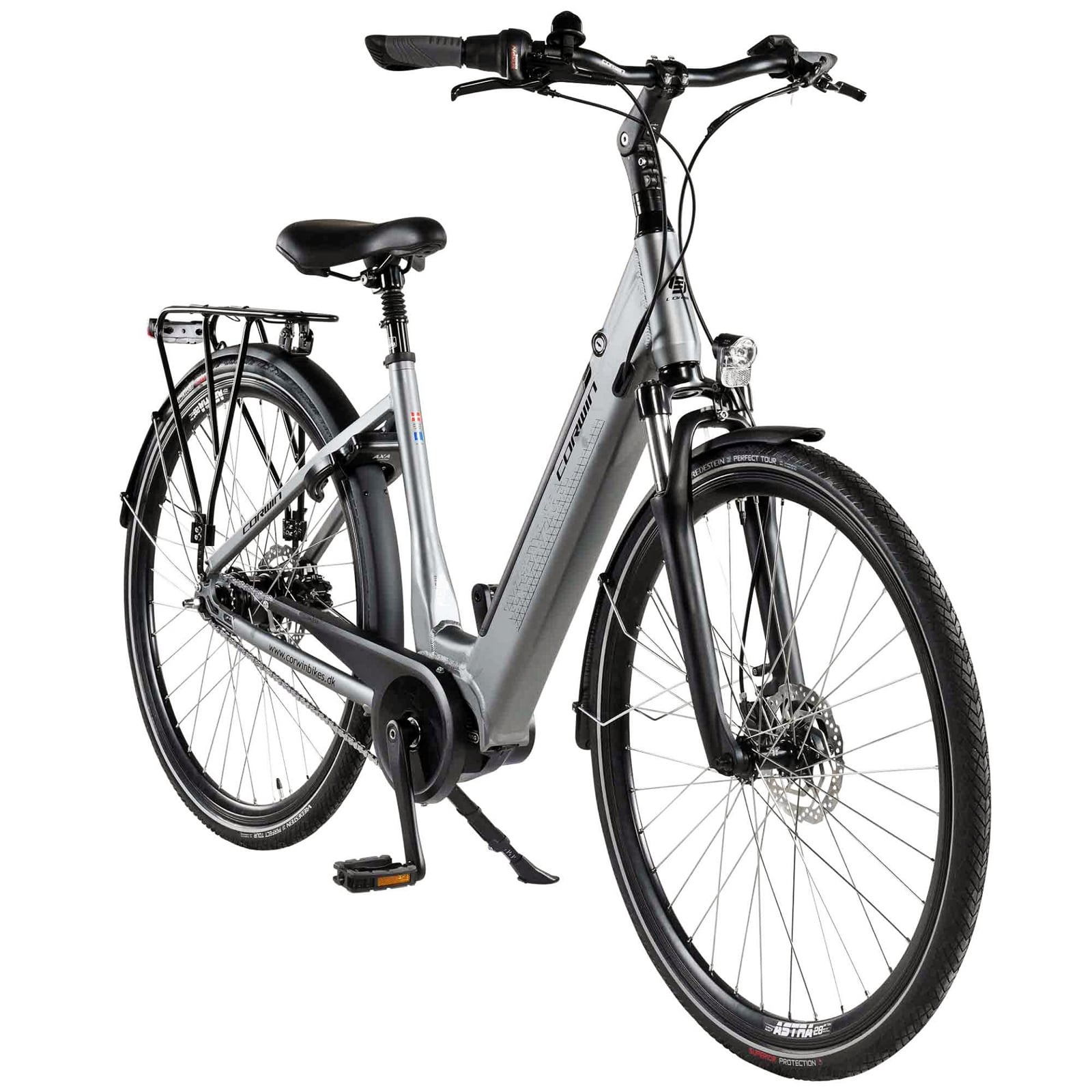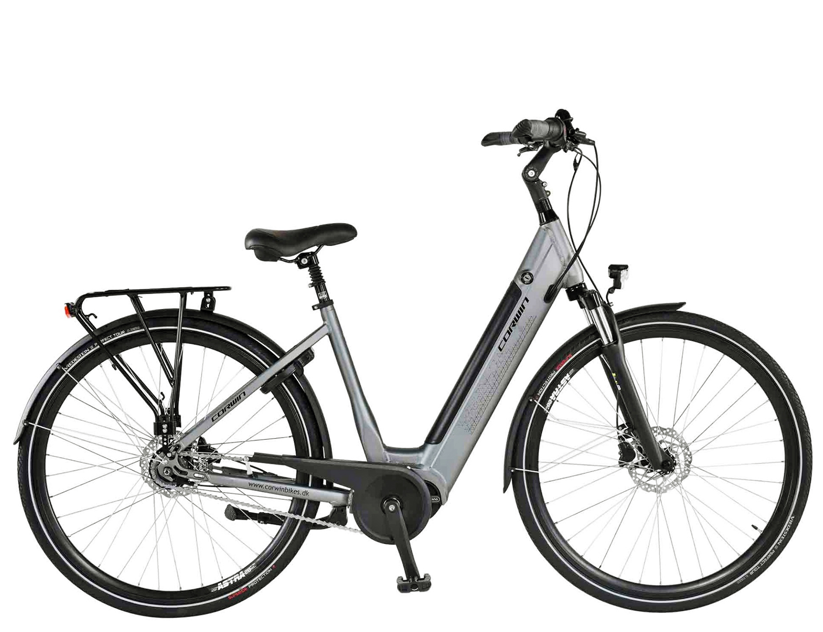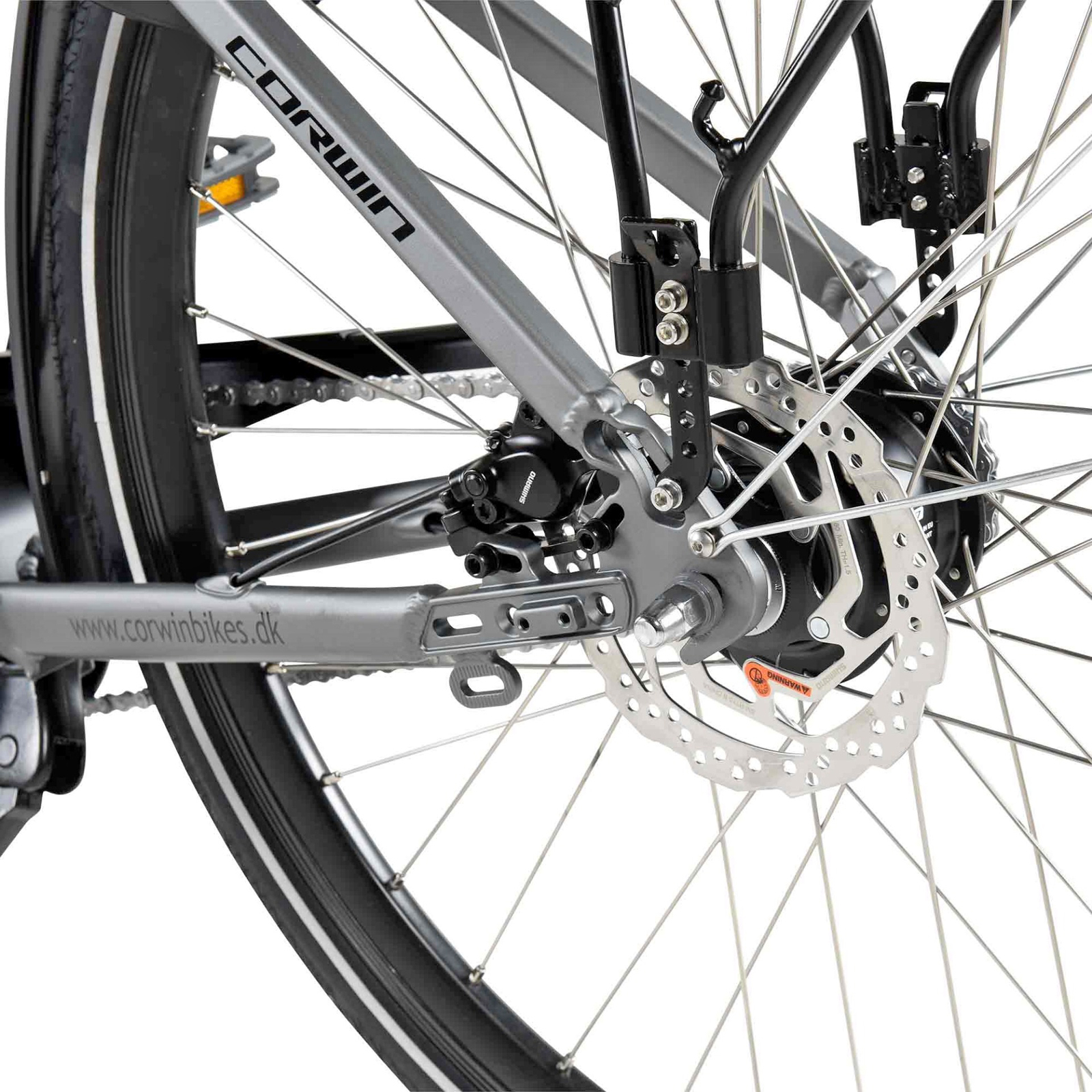 Bicicleta electrica City 28" CORWIN Elite 600+, cadru aluminiu 19.5", manete revoshift, frane hidraulice, 7 viteze, gri