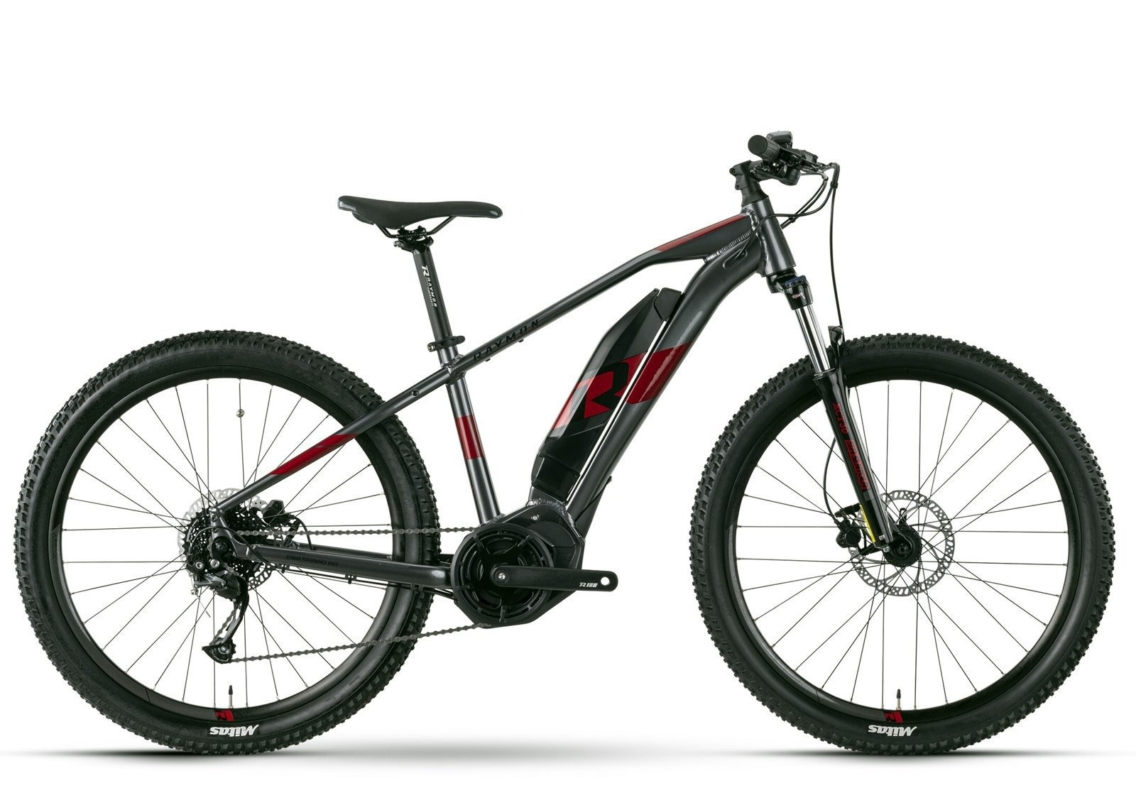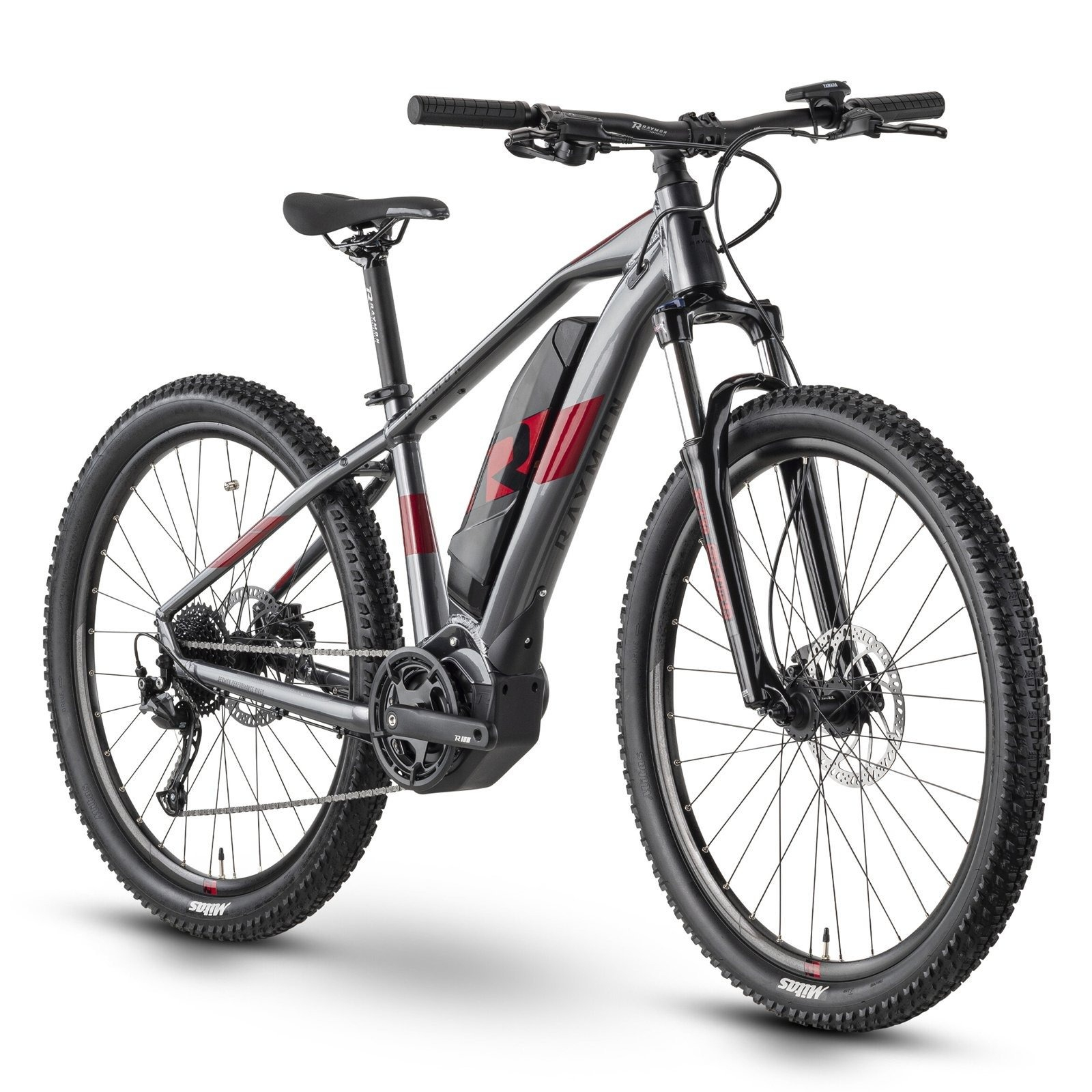 Bicicleta electrica MTB-HT 27.5" RAYMON HardRay E3.0, cadru aluminiu 17.5", manete secventiale, frane hidraulice, 9 viteze, gri/rosu