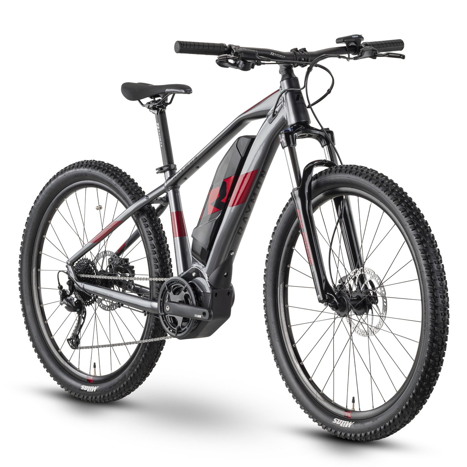 Bicicleta electrica MTB-HT 29" RAYMON HardRay E3.0, cadru aluminiu 19.5", manete secventiale, frane hidraulice, 9 viteze, gri/rosu