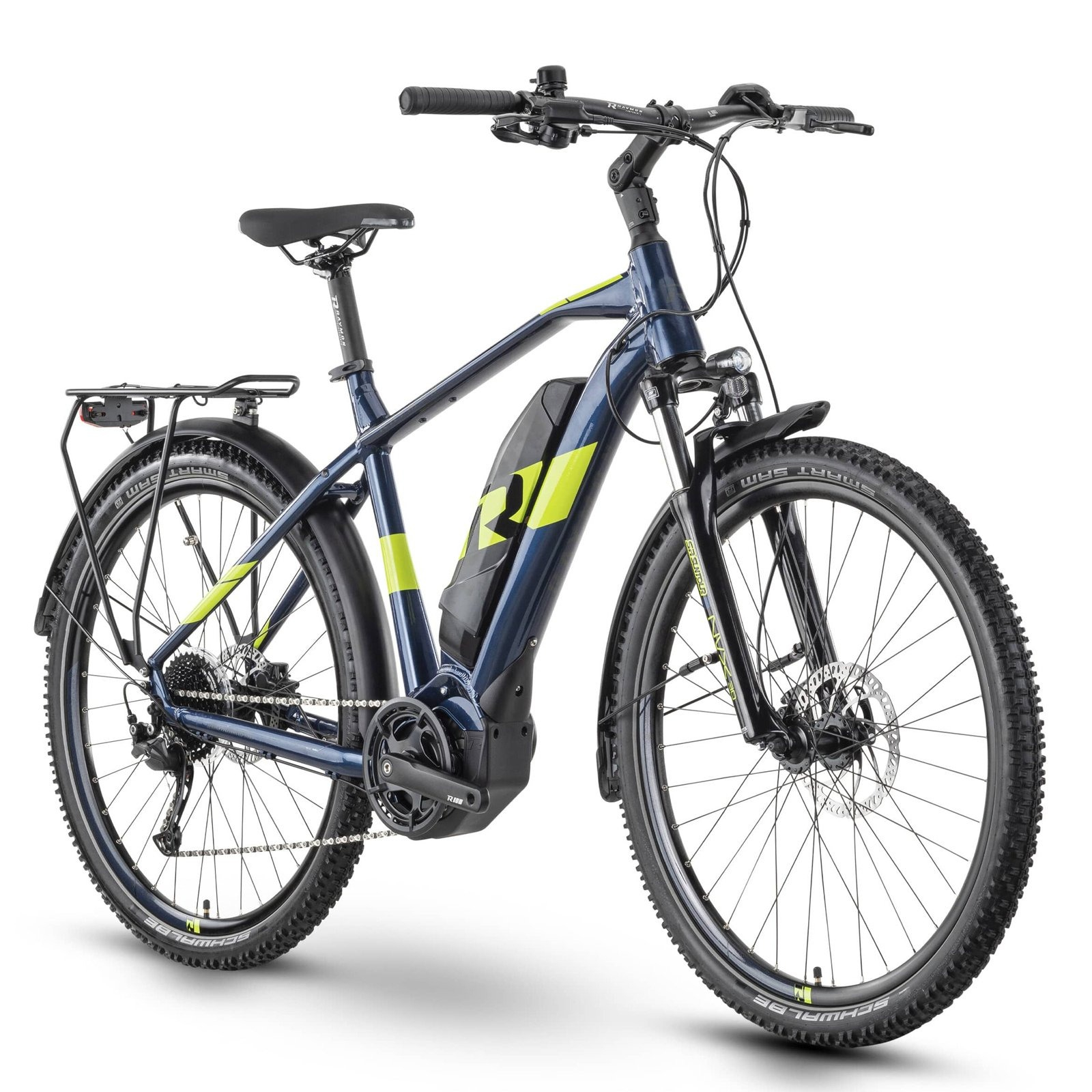 Bicicleta electrica trekking 27.5" RAYMON CrossRay E 3.0 T350, cadru aluminiu 19", manete secventiale, frane hidraulice, 9 viteze, albastru
