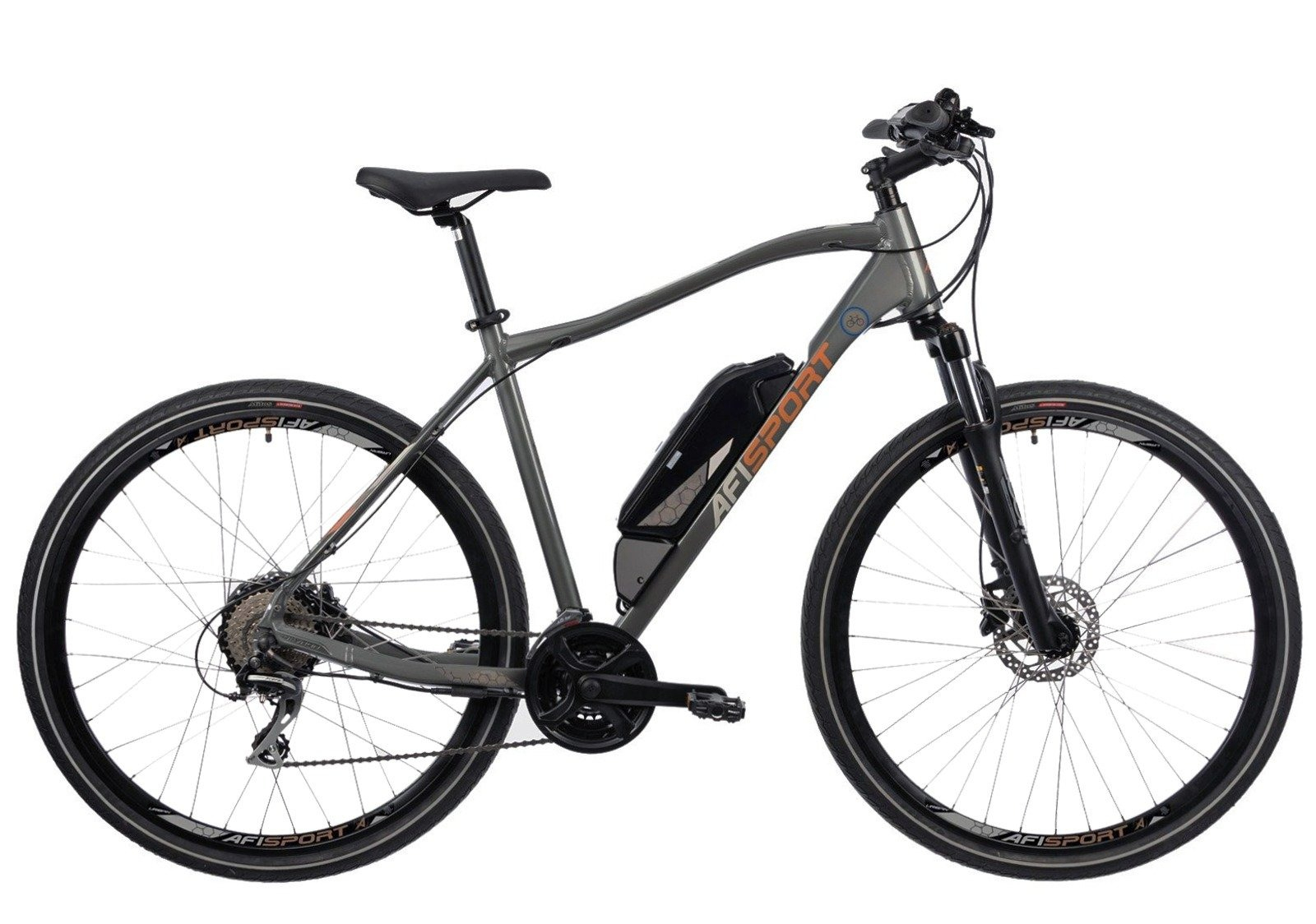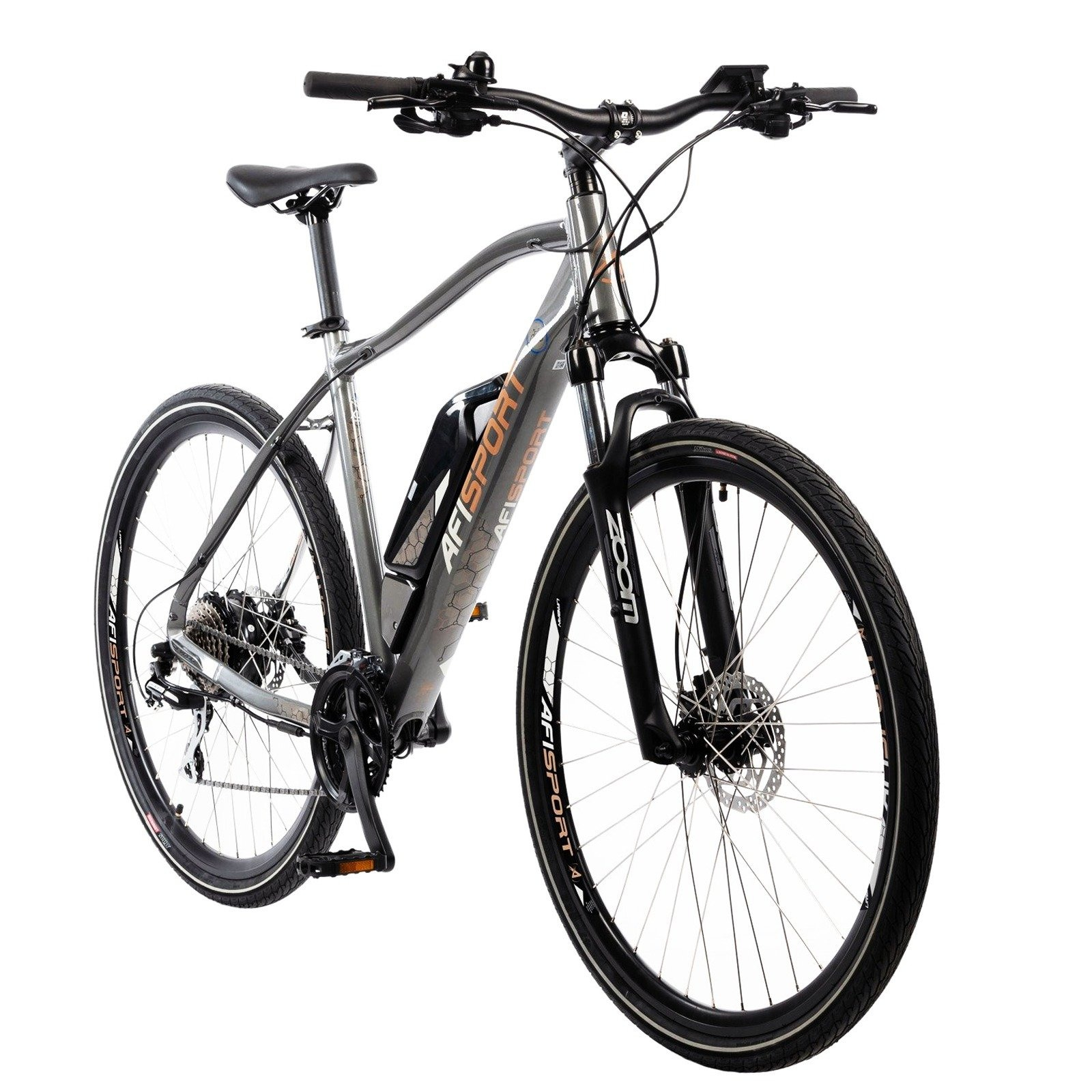 Bicicleta electrica Urban 28" AFISPORT C1.7, cadru aluminiu 19.5", manete secventiale, frane hidraulice, 24 viteze, gri