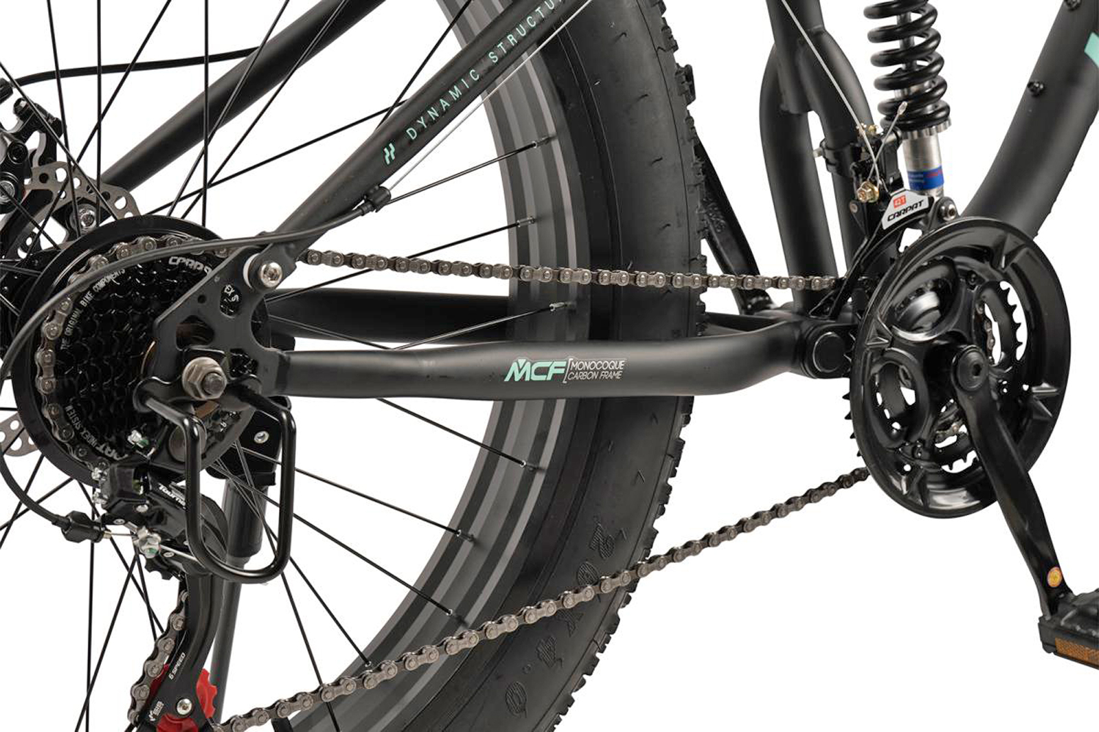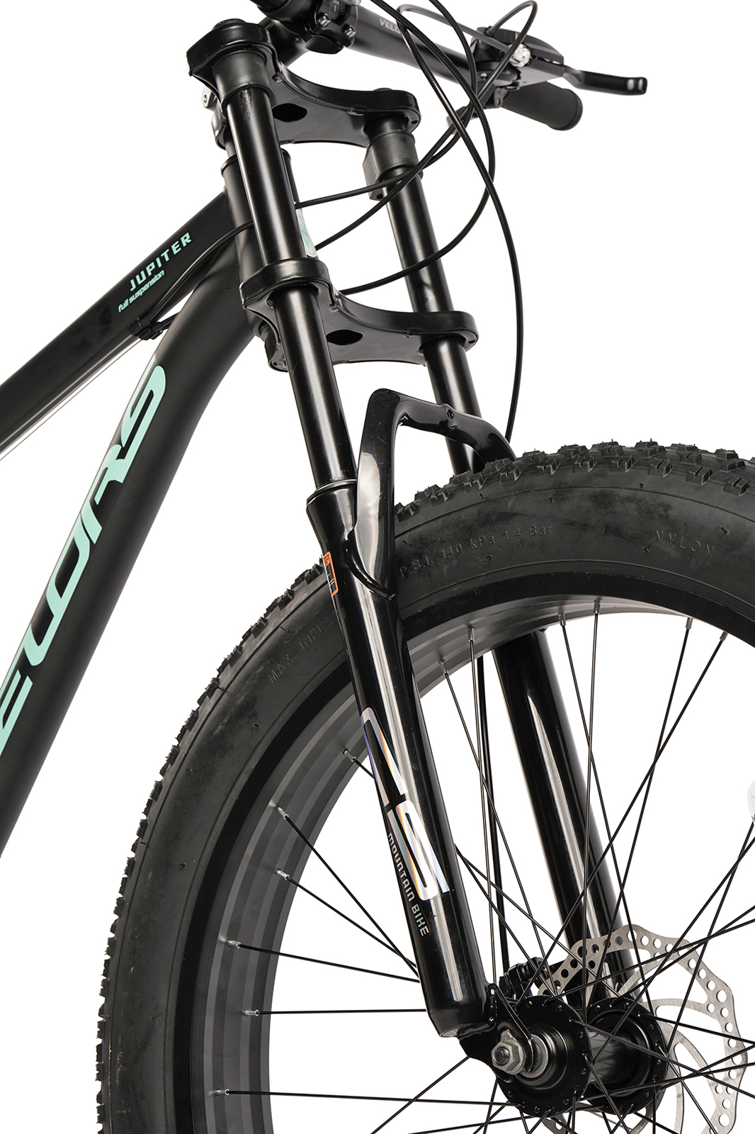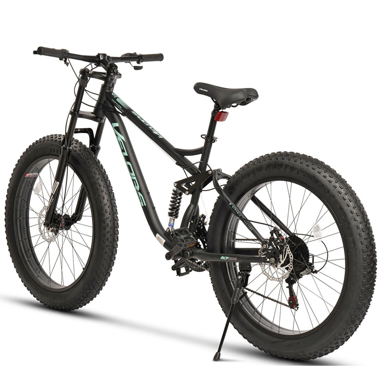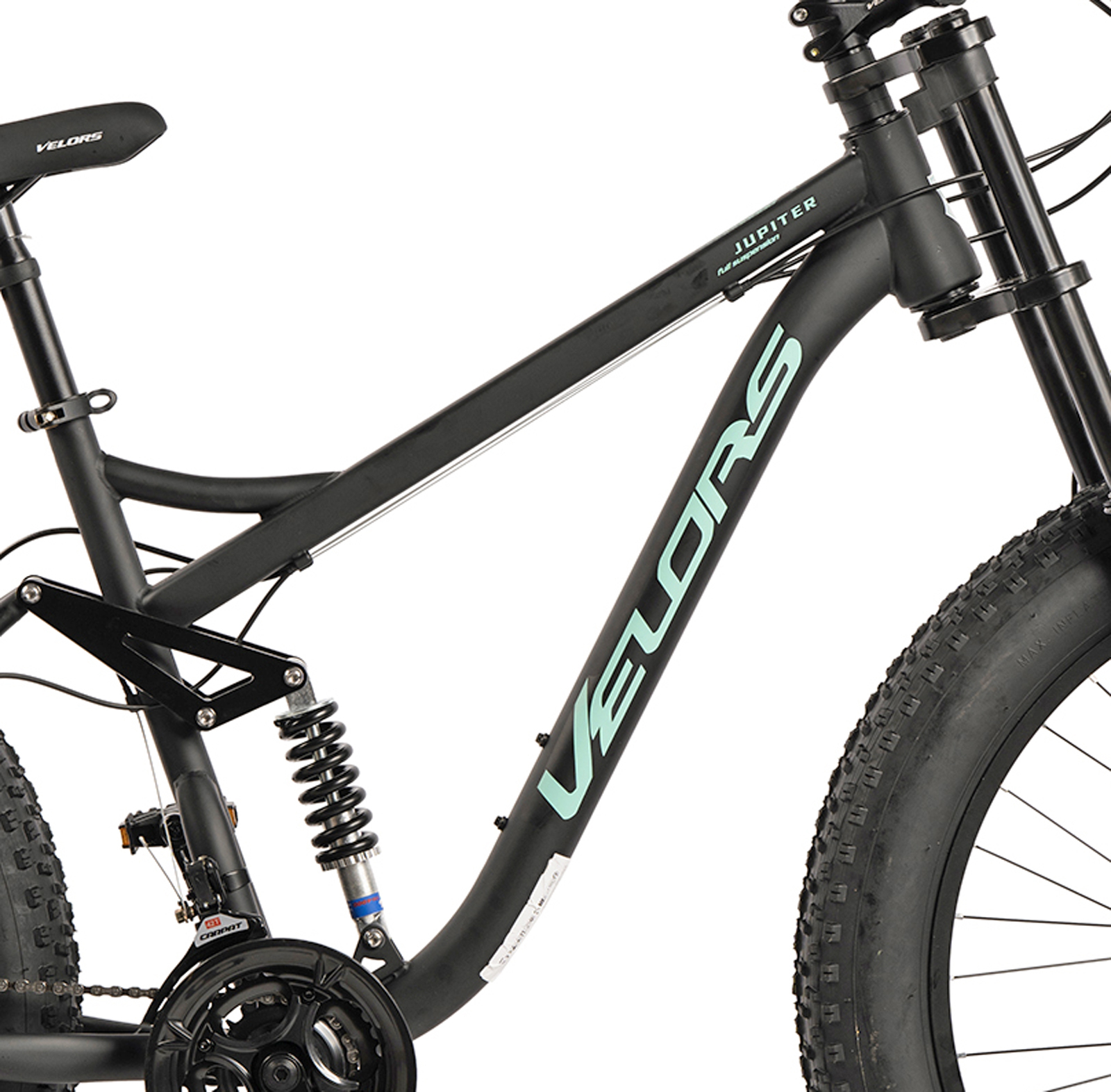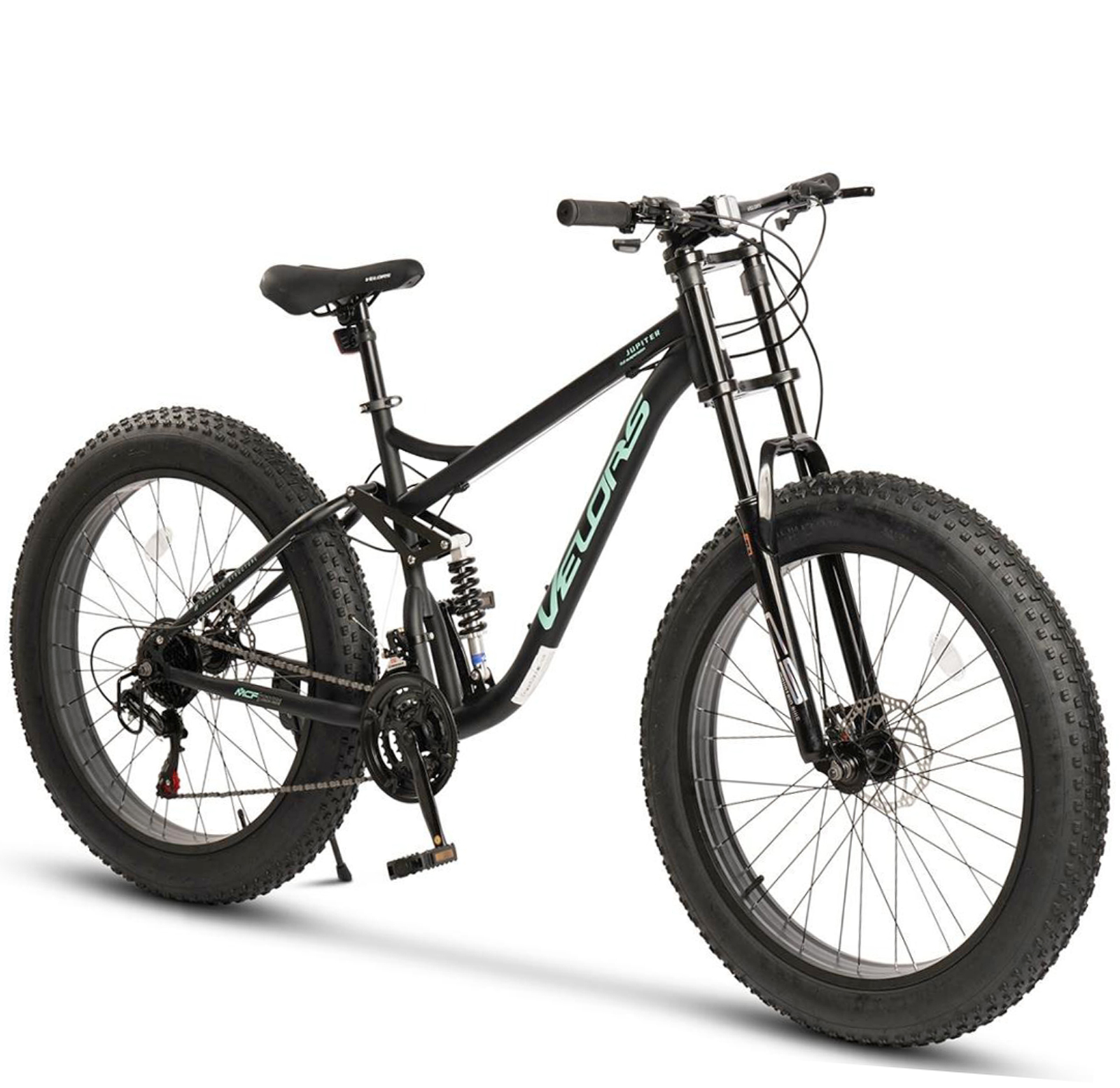 Bicicleta Fat Bike full-suspension 26" VELORS Jupiter, cadru otel 17", manete secventiale, frane disc, 21 viteze, negru/turcoaz
