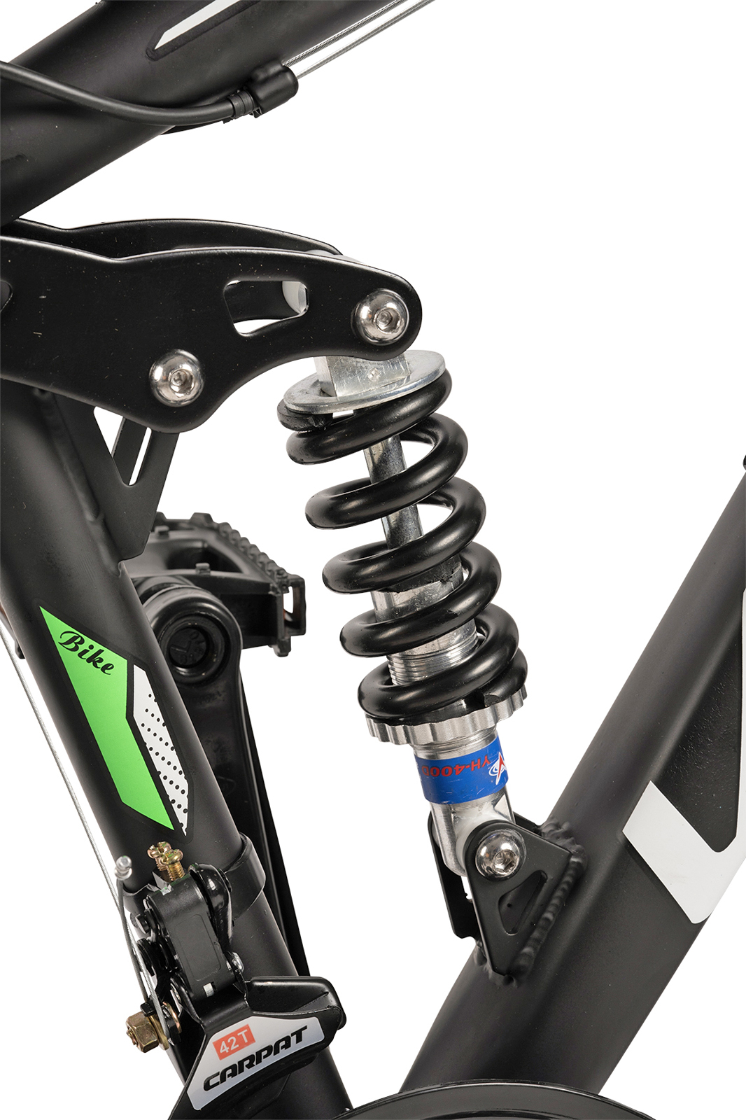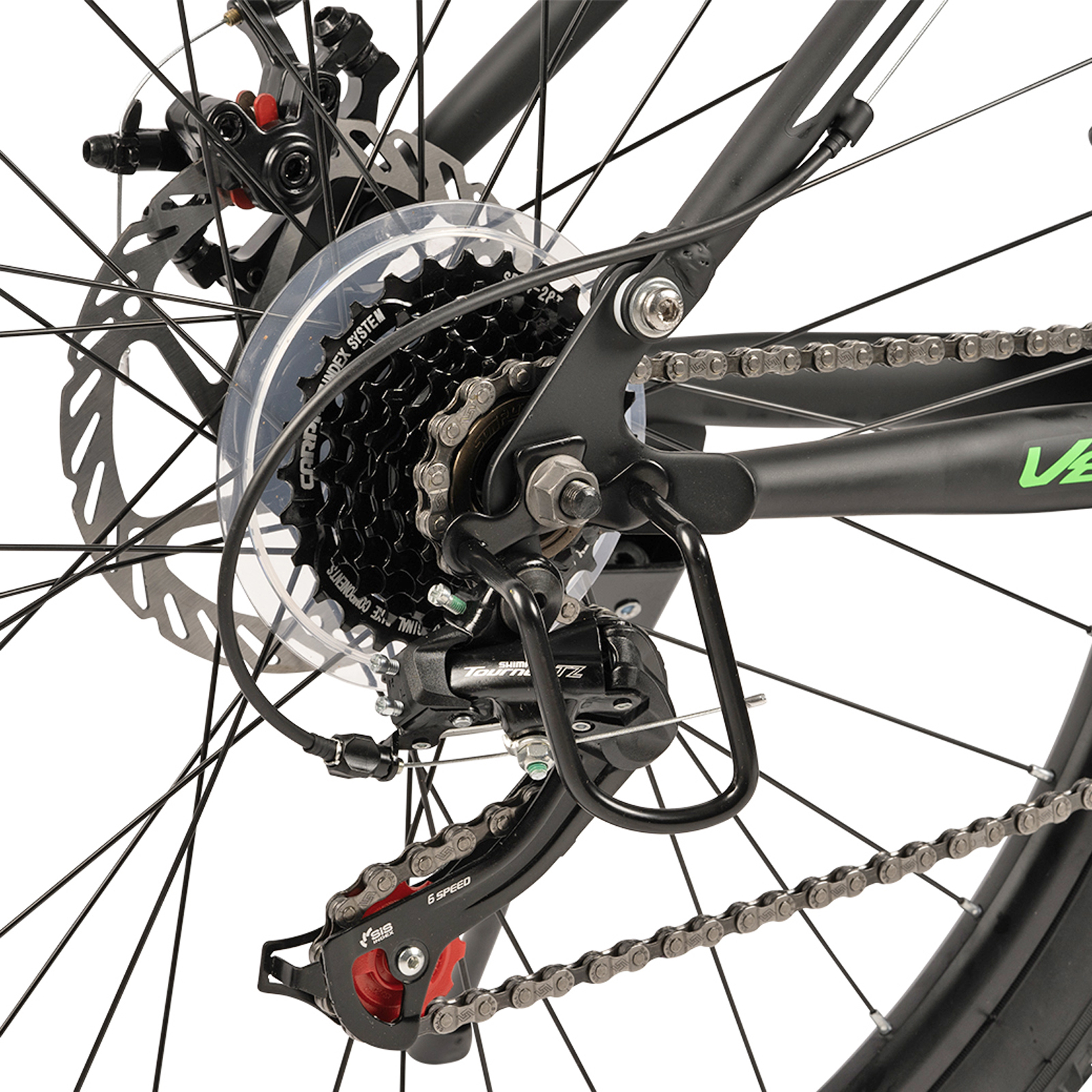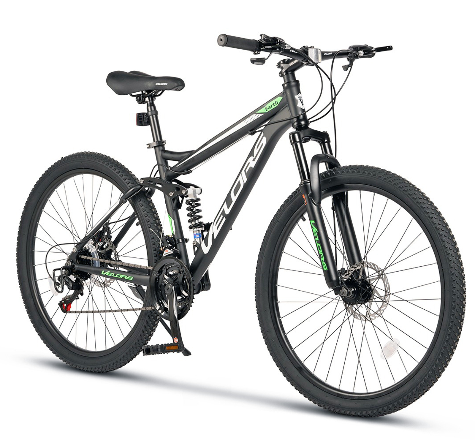 Bicicleta MTB-FS 26" VELORS Earth, cadru otel 17", manete secventiale, frane disc, 21 viteze, negru/verde