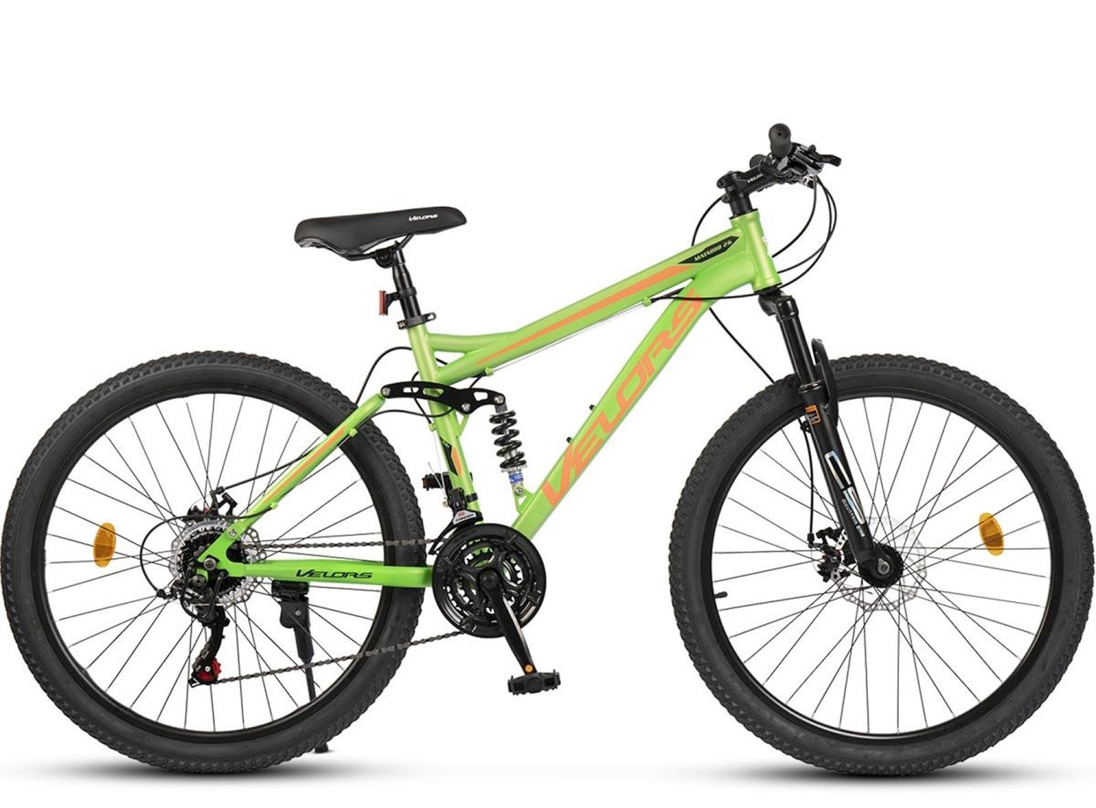 Bicicleta MTB-FS 26" VELORS Matador 2.6, cadru otel 17", manete secventiale, frane disc, 21 viteze, verde/portocaliu
