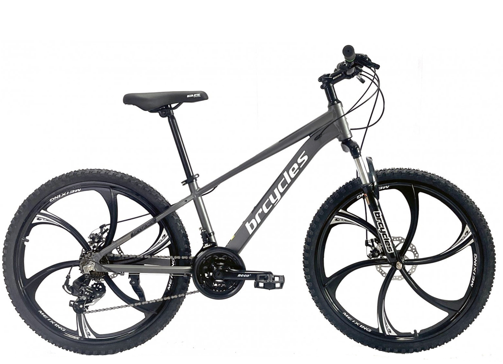 Bicicleta MTB-HT 24" BR Tornado ProMG, cadru aluminiu 13", jante magneziu, manete secventiale, frane disc, 21 viteze, gri