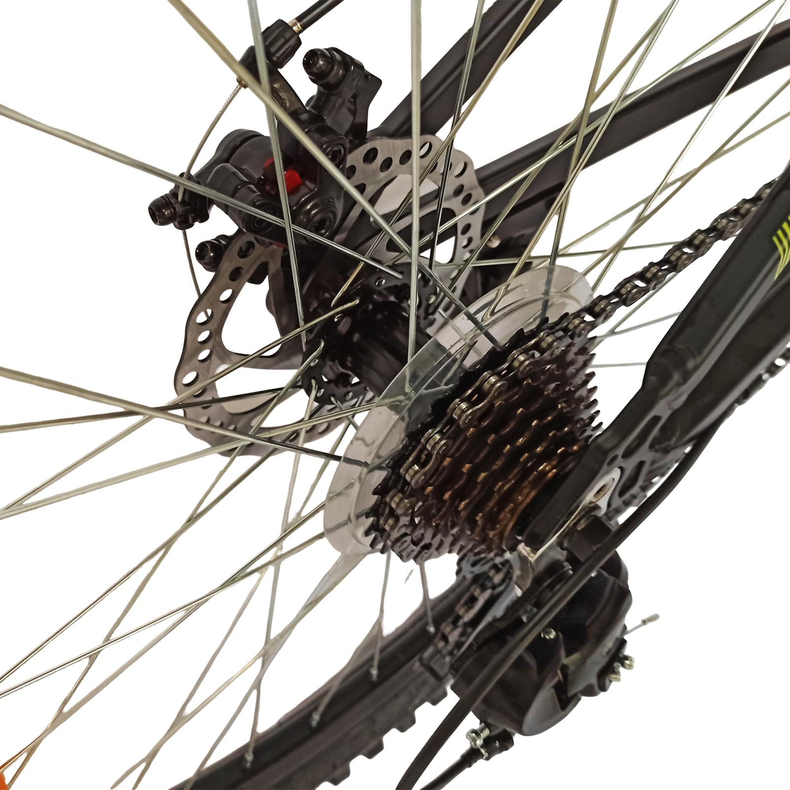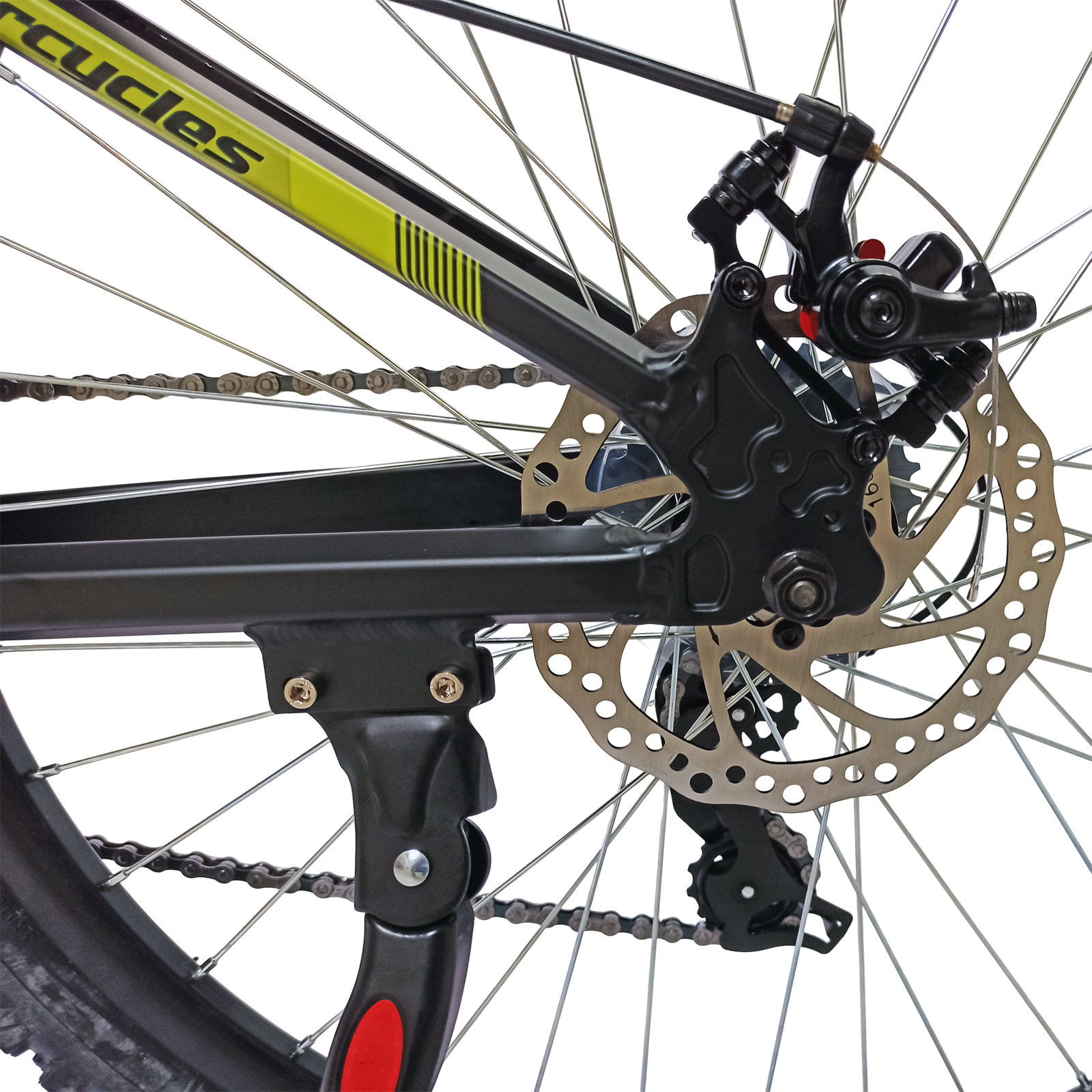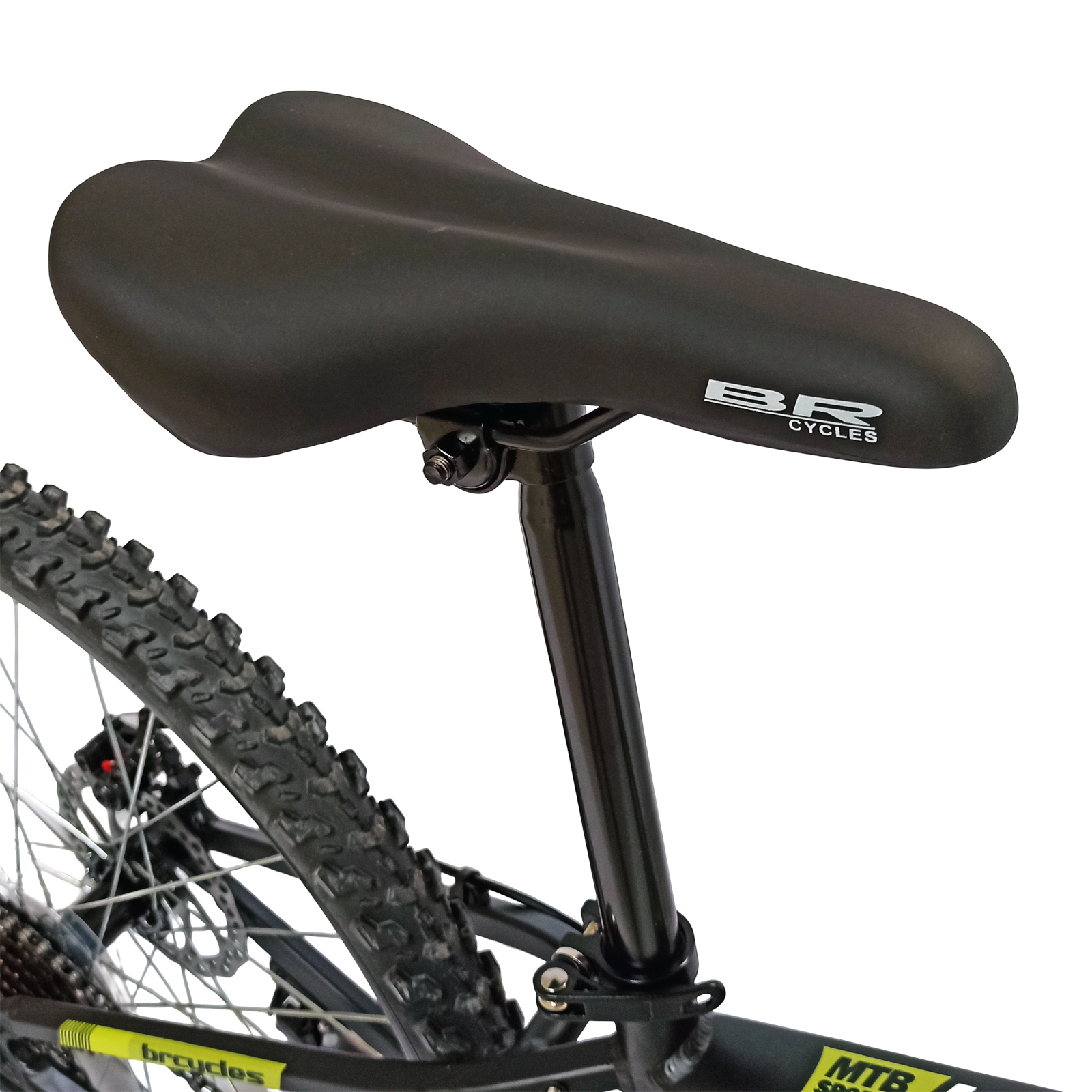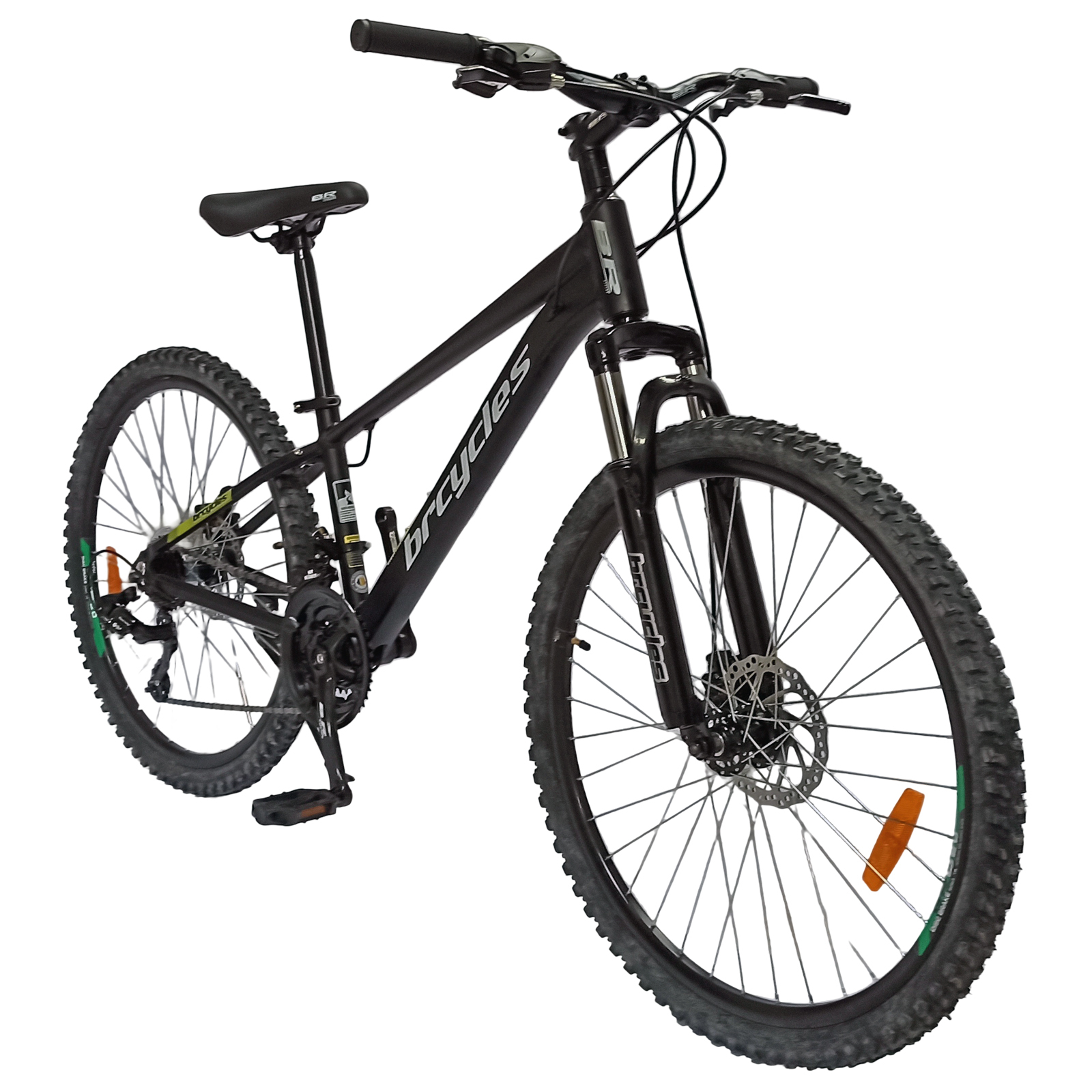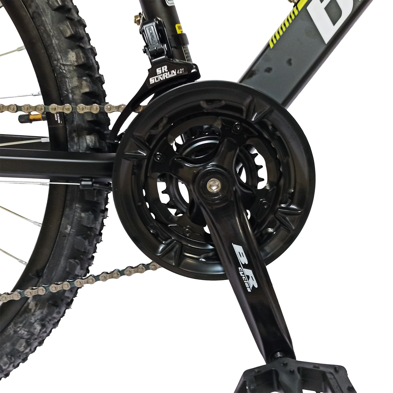 Bicicleta MTB-HT 26" BR Tornado, cadru aluminiu 13.5", manete secventiale, frane disc, 21 viteze, negru/galben mat