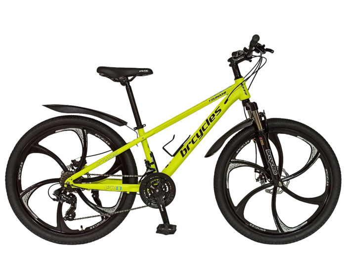 Bicicleta MTB-HT 26" BR Tsunami ProMG, cadru otel 15", jante magneziu, manete secventiale, frane disc, 21 viteze, galben fluo