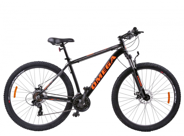 Bicicleta MTB-HT 27.5" OMEGA Gerry, cadru aluminiu 19.5", manete secventiale, frane disc, 21 viteze, negru/portocaliu