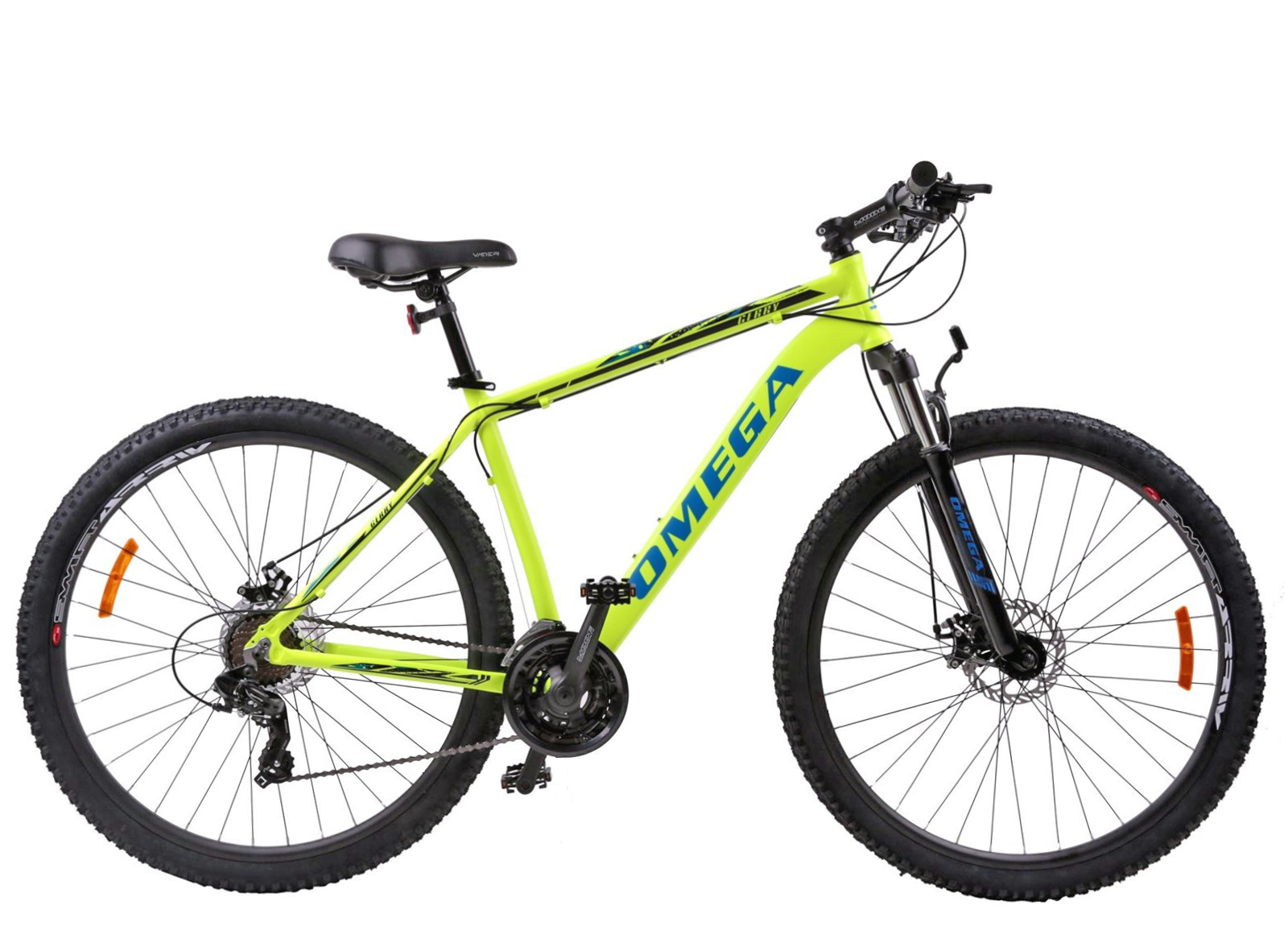 Bicicleta MTB-HT 29" OMEGA Gerry, cadru aluminiu 19.5", manete secventiale, frane disc, 21 viteze, galben/albastru
