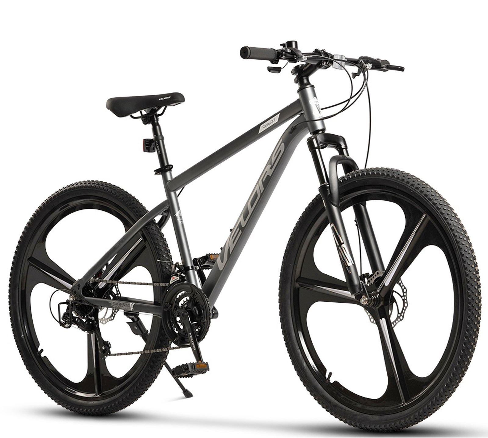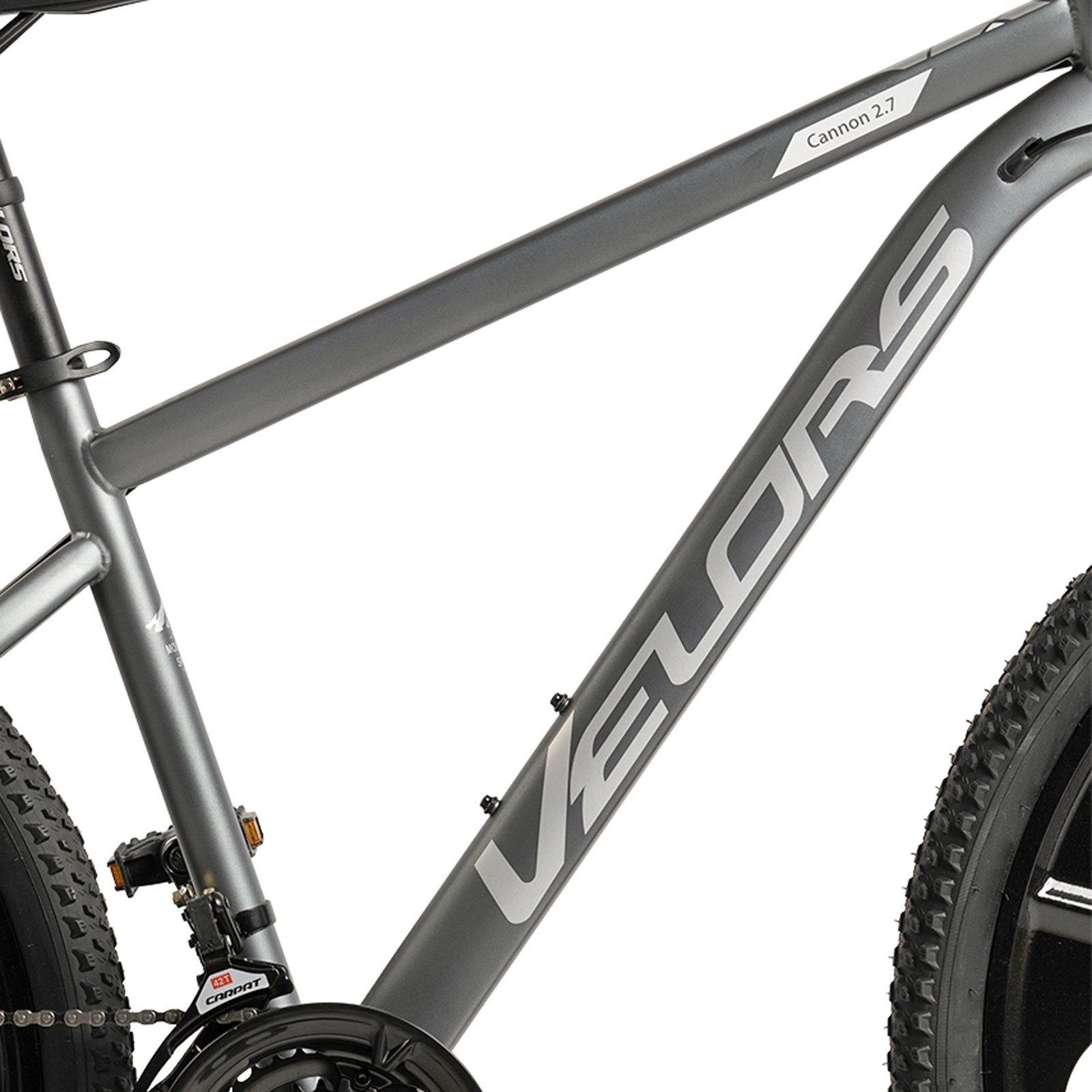 Bicicleta MTB-HT 27.5" VELORS Cannon 2.7, cadru otel 18", jante magneziu, frane disc, manete secventiale, 21 viteze, gri/alb