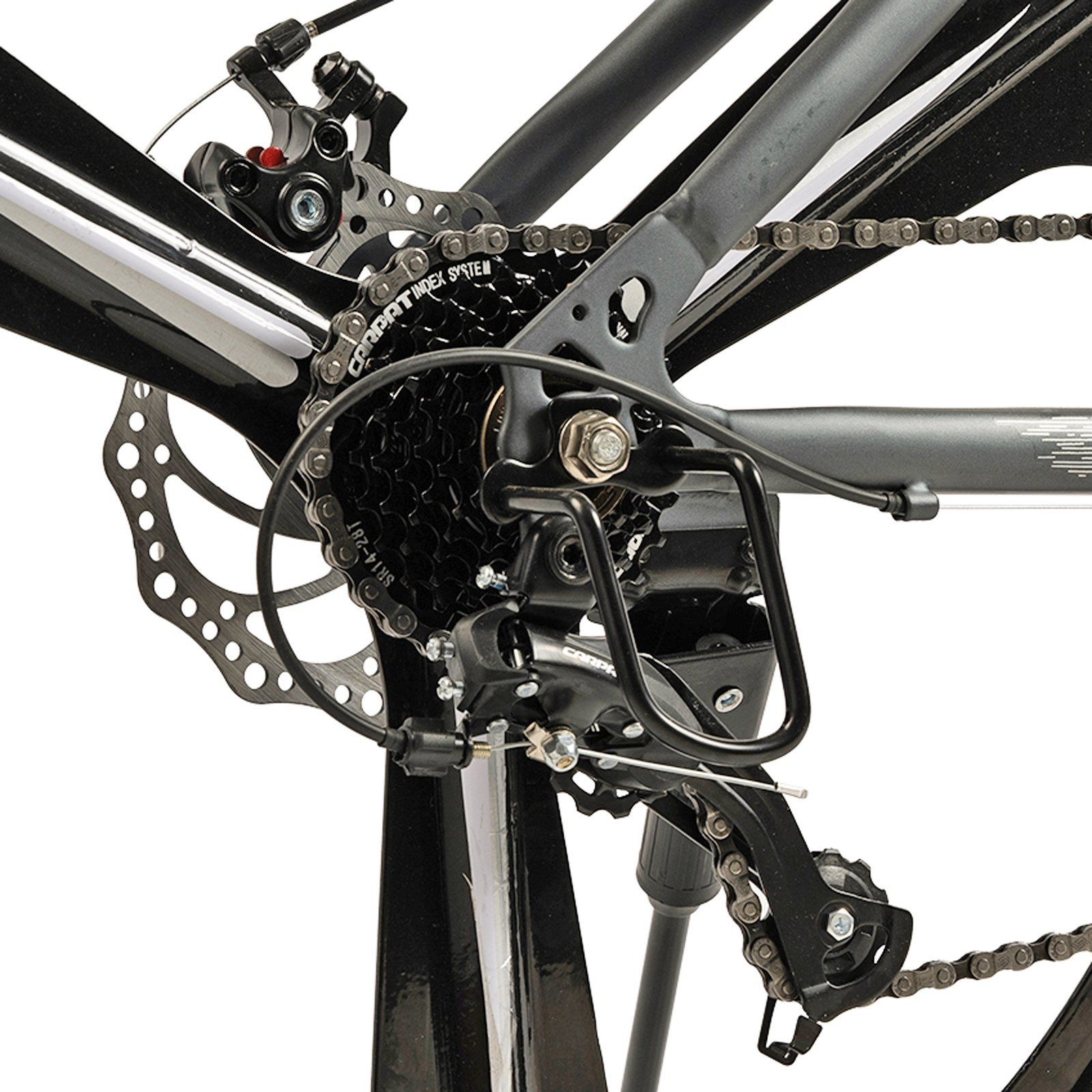 | CADRU | otel Hi-Ten, geometrie specifica MTB-HT, vopsea mata, stickere sub lac, cabluri inserate in cadru |