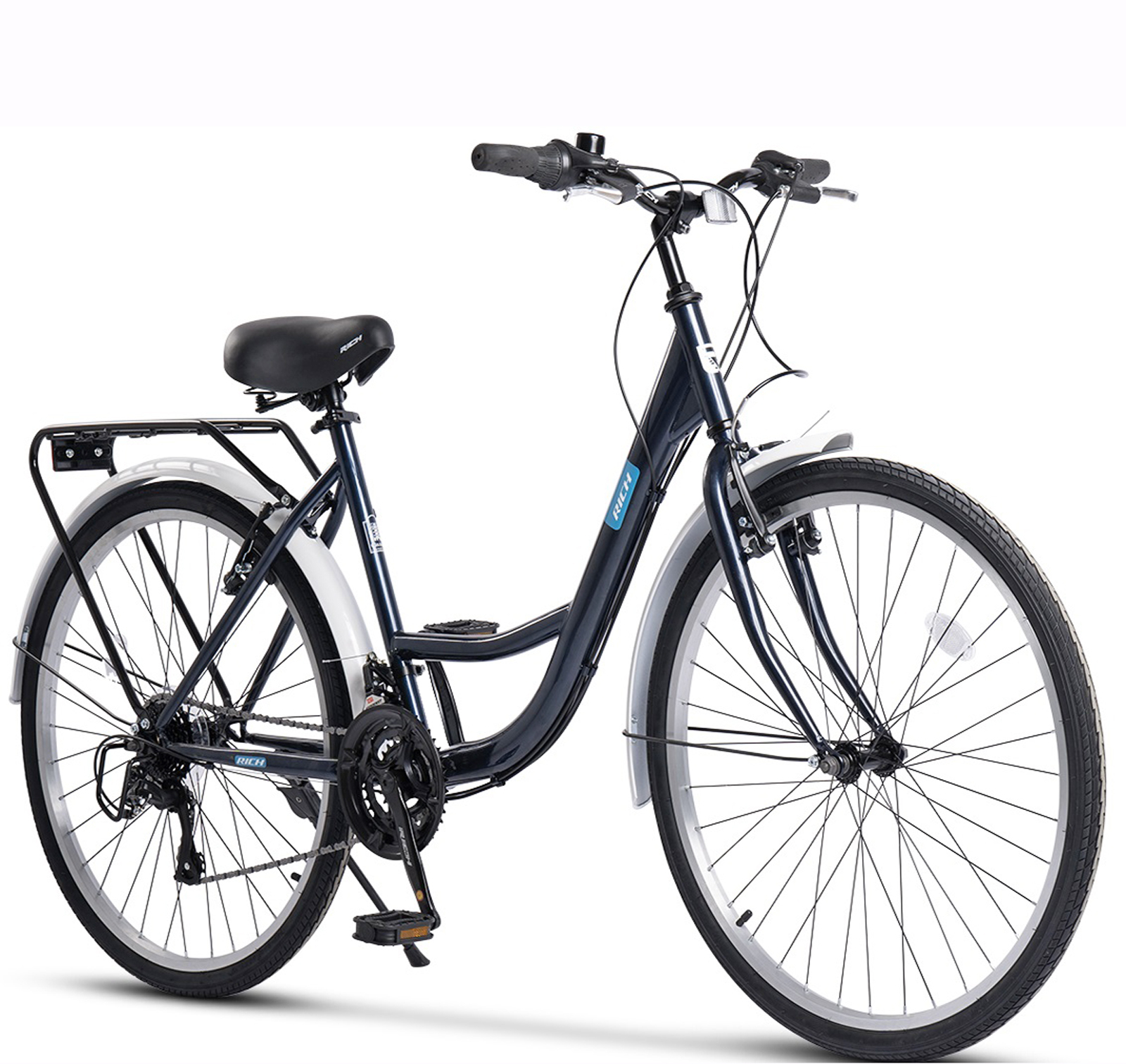 RICH BIKE Bicicleta oras 26" RICH Meridian, cadru otel 19", manete RevoShift, frane V-Brake, 21 viteze, albastru
