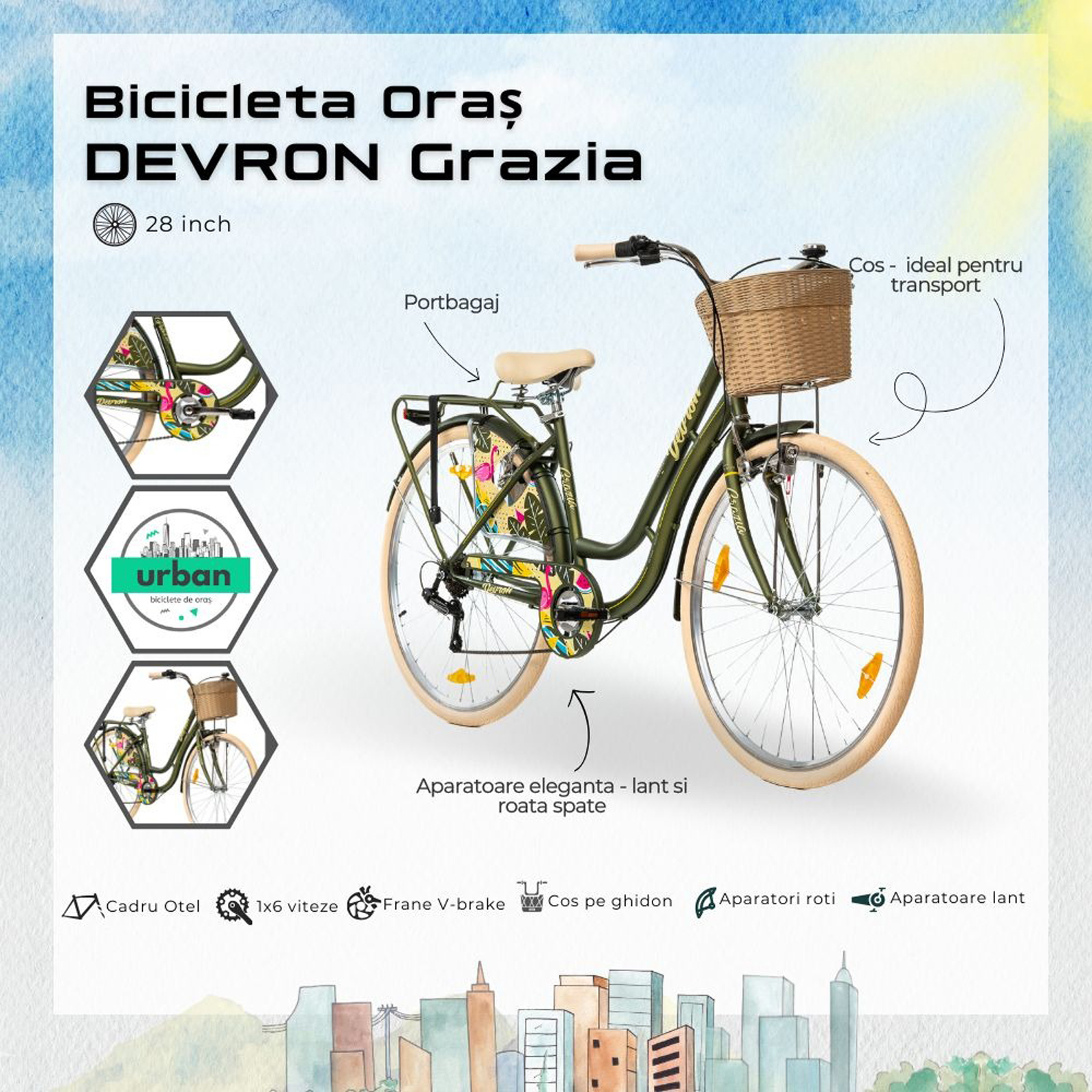 Bicicleta oras 28" DEVRON Grazia 6S, cadru otel 18", manete revoshift, frane V-Brake, 6 viteze, verde