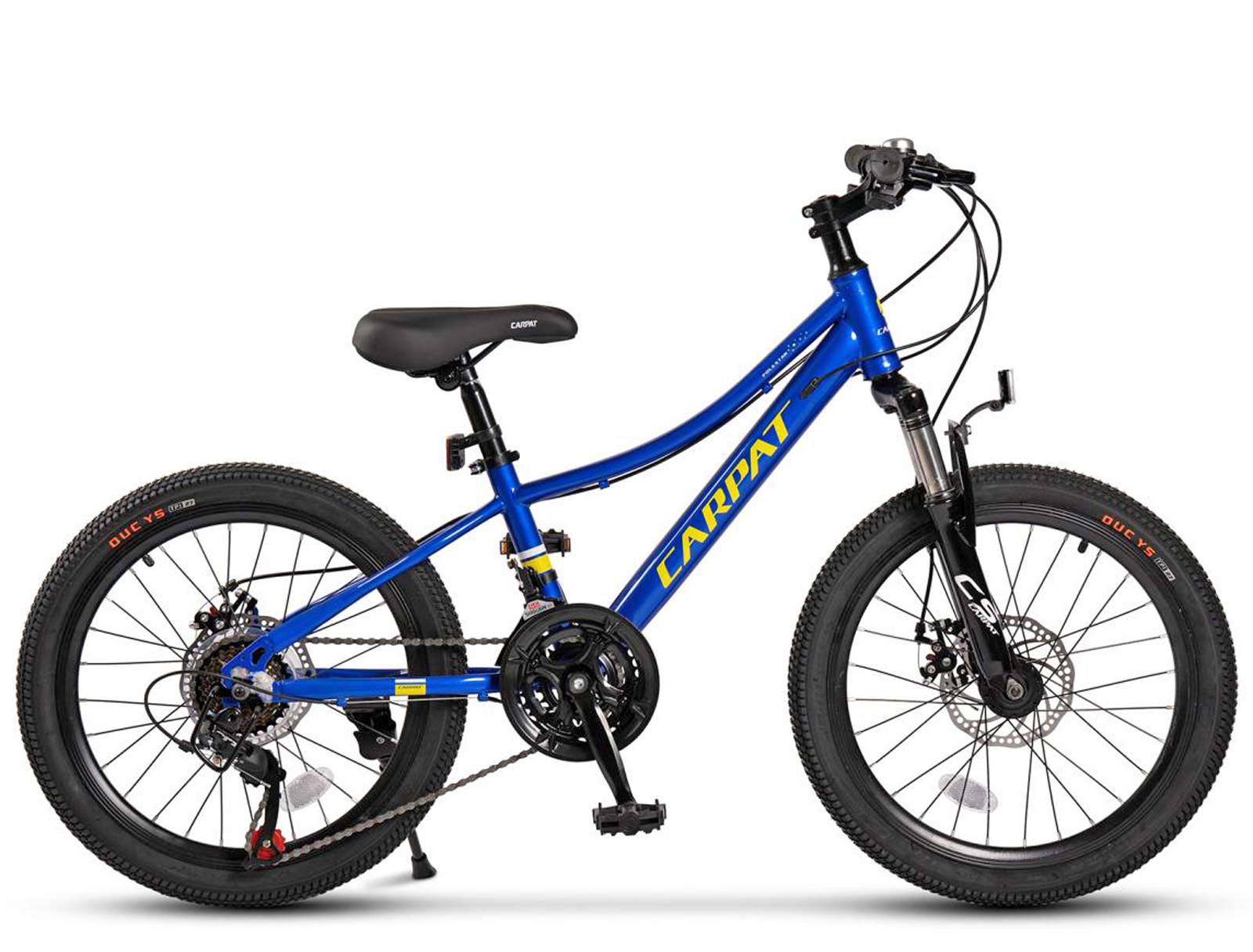 Bicicleta copii 20" CARPAT Polestar, cadru otel, manete secventiale, frane disc, 21 viteze, albastru, varsta 7-10 ani