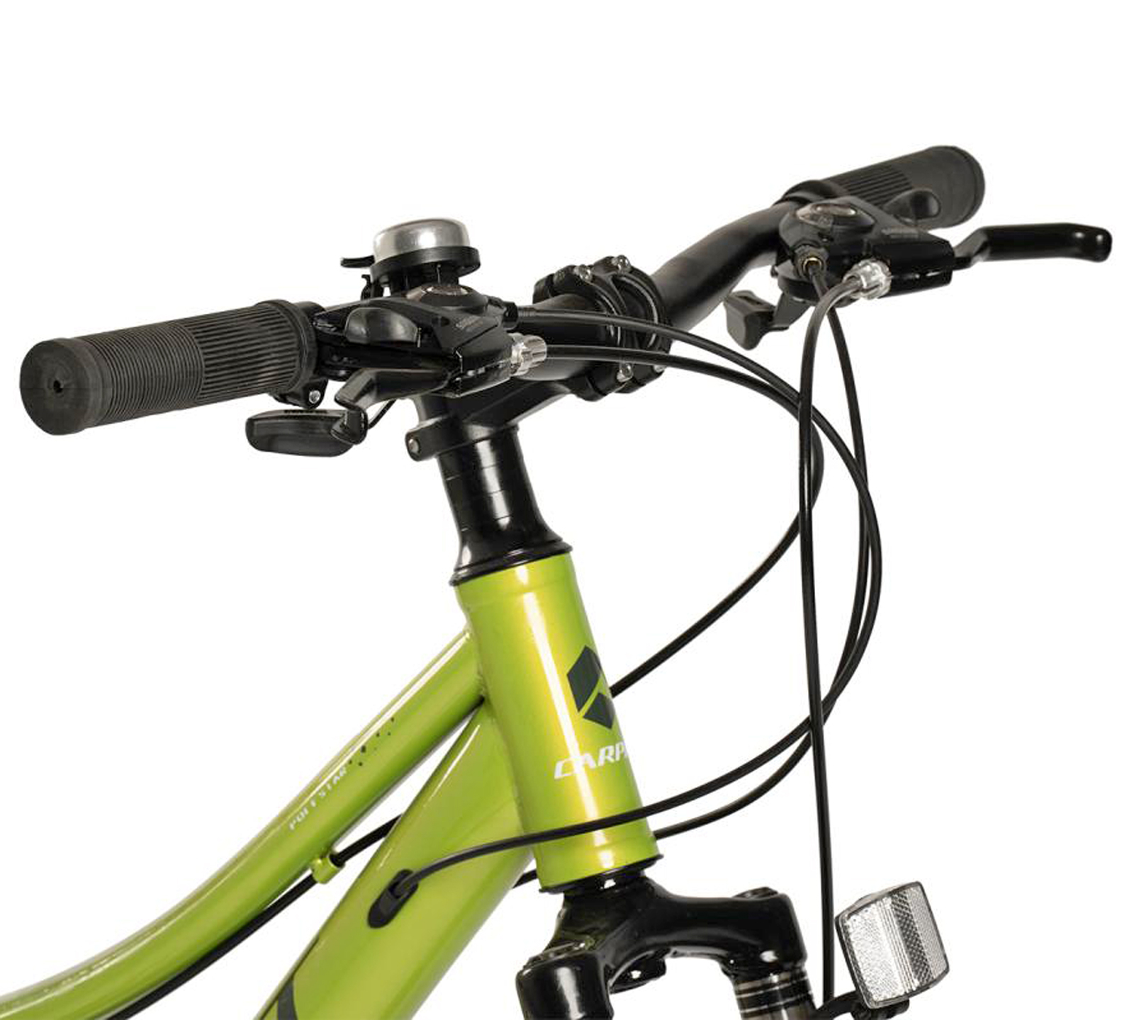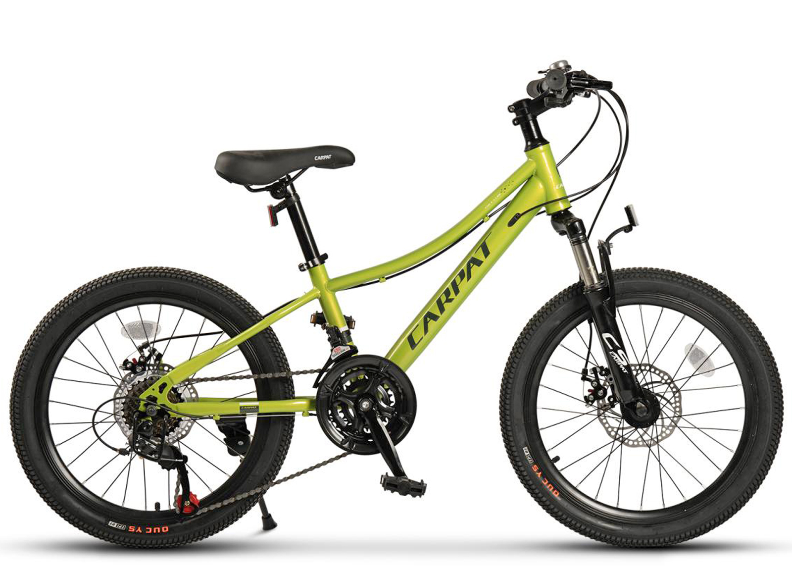 Bicicleta copii 20" CARPAT Polestar, cadru otel, manete secventiale, frane disc, 21 viteze, verde lime, varsta 7-10 ani