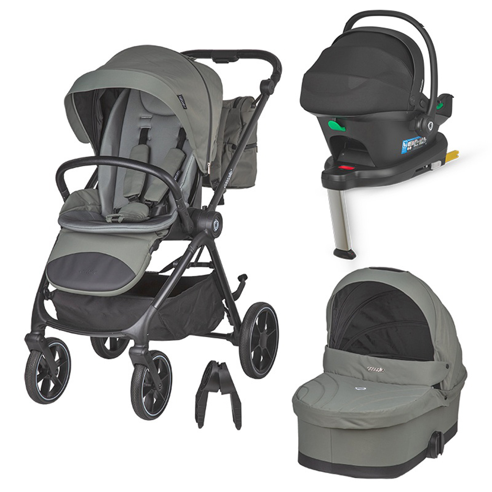 Un travel system complet, gândit pentru părinții care vor să treacă ușor de la plimbare la mașină (și invers), fără compromis la capitolul confort, stil și siguranță: cărucior 2in1 premium + scoică i-Size + bază Isofix i-Size.