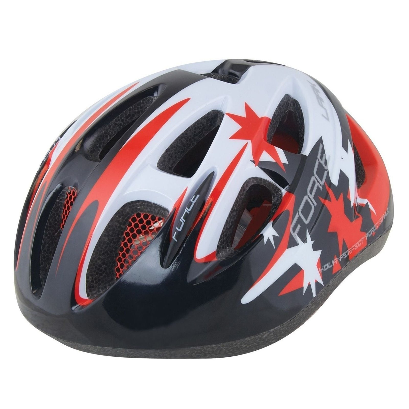 FORCE Casca ciclism copii FORCE Lark, negru/rosu/alb, tehnologie In-Mold, marime M (54-58 cm)