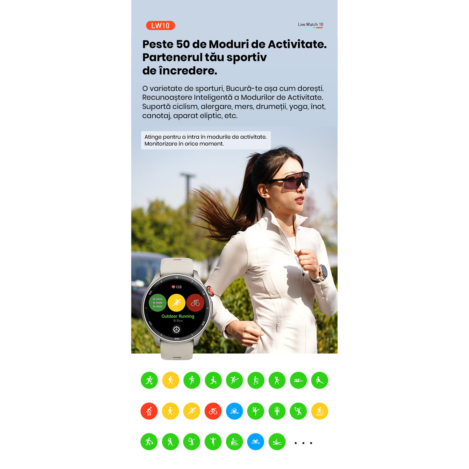 - Senzori: Puls, Accelerometru, Geomagnetic, Barometric, GPS