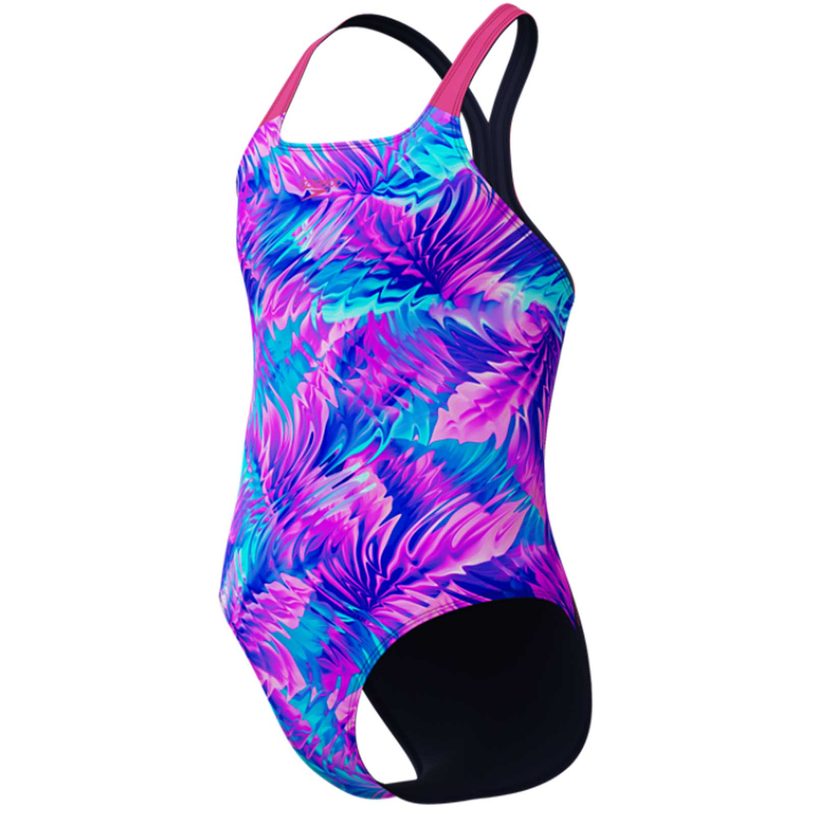 Costum inot fete Speedo Printed Powerback roz/albastru – rezistent la clor, Endurance+