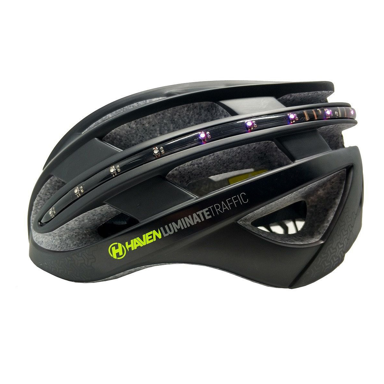 Casca HAVEN Luminate Traffic dispune de un numar mare de leduri de semnalizare frontale si posterioare, atentionand pe ceilalti participanti ai traficului de prezenta utilizatorului pe timp de noapte. Incarcarea produsului se face facil, prin USB.