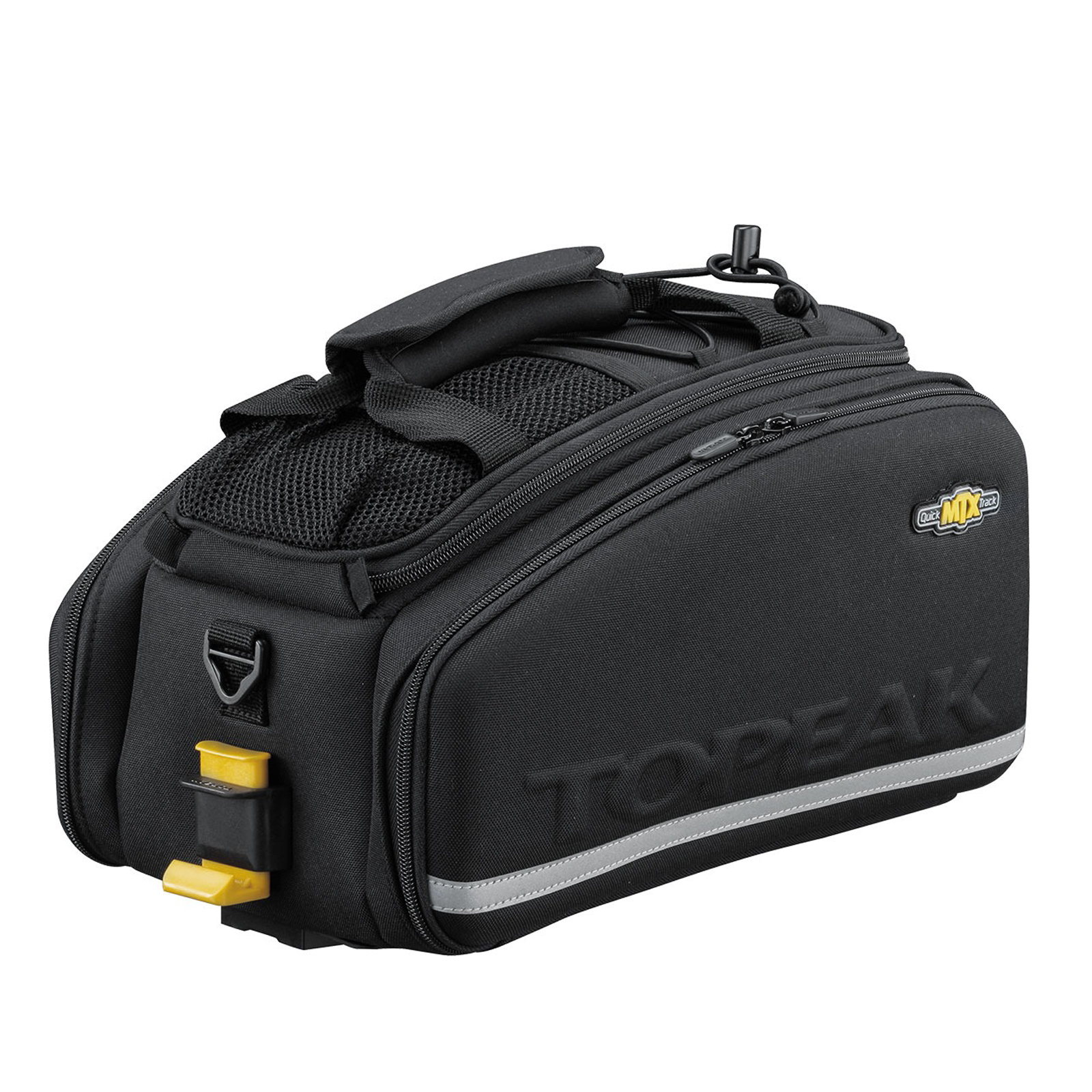 TOPEAK TrunkBag MTX este o geanta tip cob de mare capacitate, care contine un compartiment principal divizat, cu doua panouri laterale extensibile ale portbagajului si suport pentru sticla de apa din spate
