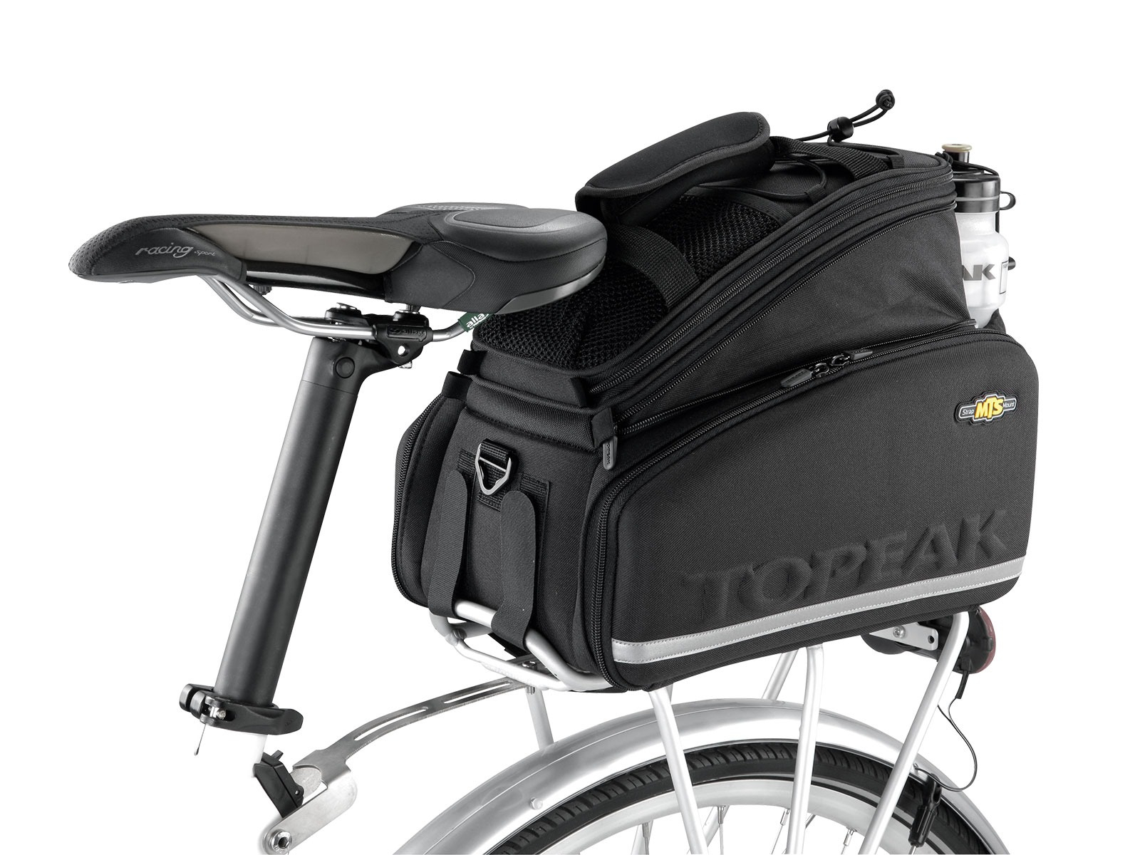Suportul pentru sticla de apă din spate vă permite să transportați mai multă apă în călătoriile prelungite.