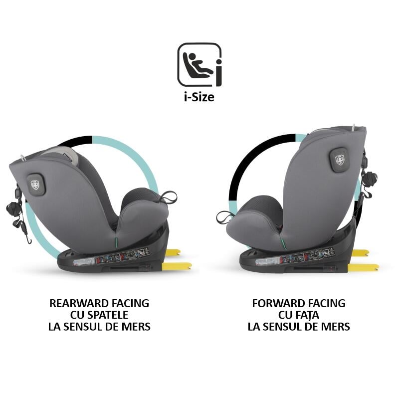 Scaunul auto Nova iSize poate fi folosit cu spatele la sensul de mers pana la 105 cm. Recomandam intotdeauna utilizarea cat mai extensiva a acestui mod de instalare, insa pentru acei copii care simt nevoie sa fie cu fata la sensul de mers, scaunul ofera avantajul utilizarii astfel de la 76 cm. Insertul pentru nou-nascuti a fost conceput pentru a fi cat se poate de ergonomic si este matlasat cu spuma de memorie. Socurile sunt absorbite nu doar de aceste elemente din spuma de memorie ci si de dispozitivul pentru protectie laterala.