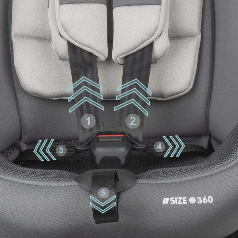 Centurile de siguranta se vor indeparta incepand de la inaltimea de 100 cm, iar scaunul va deveni perfect pentru acea etapa de viata a celui mic.