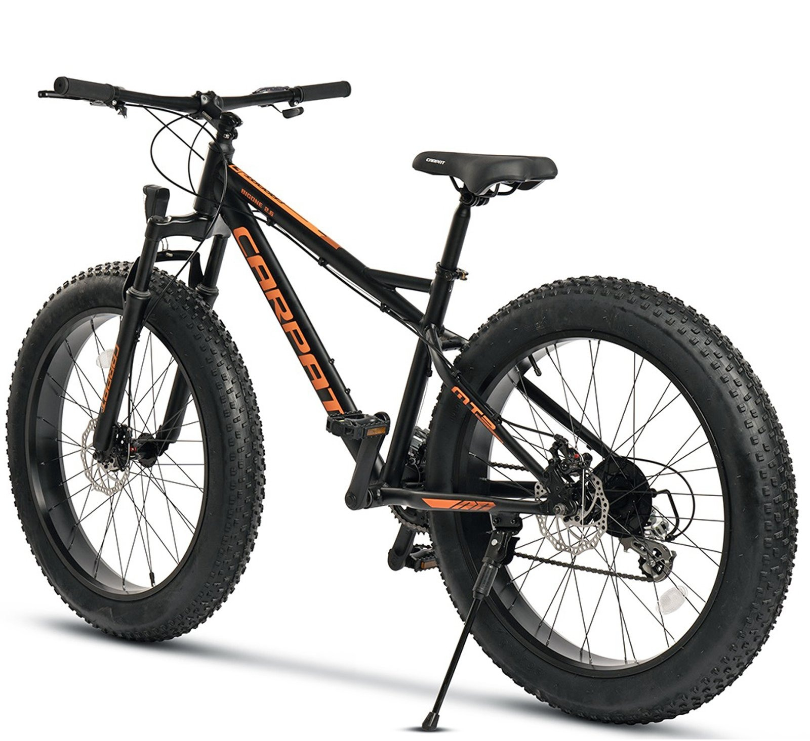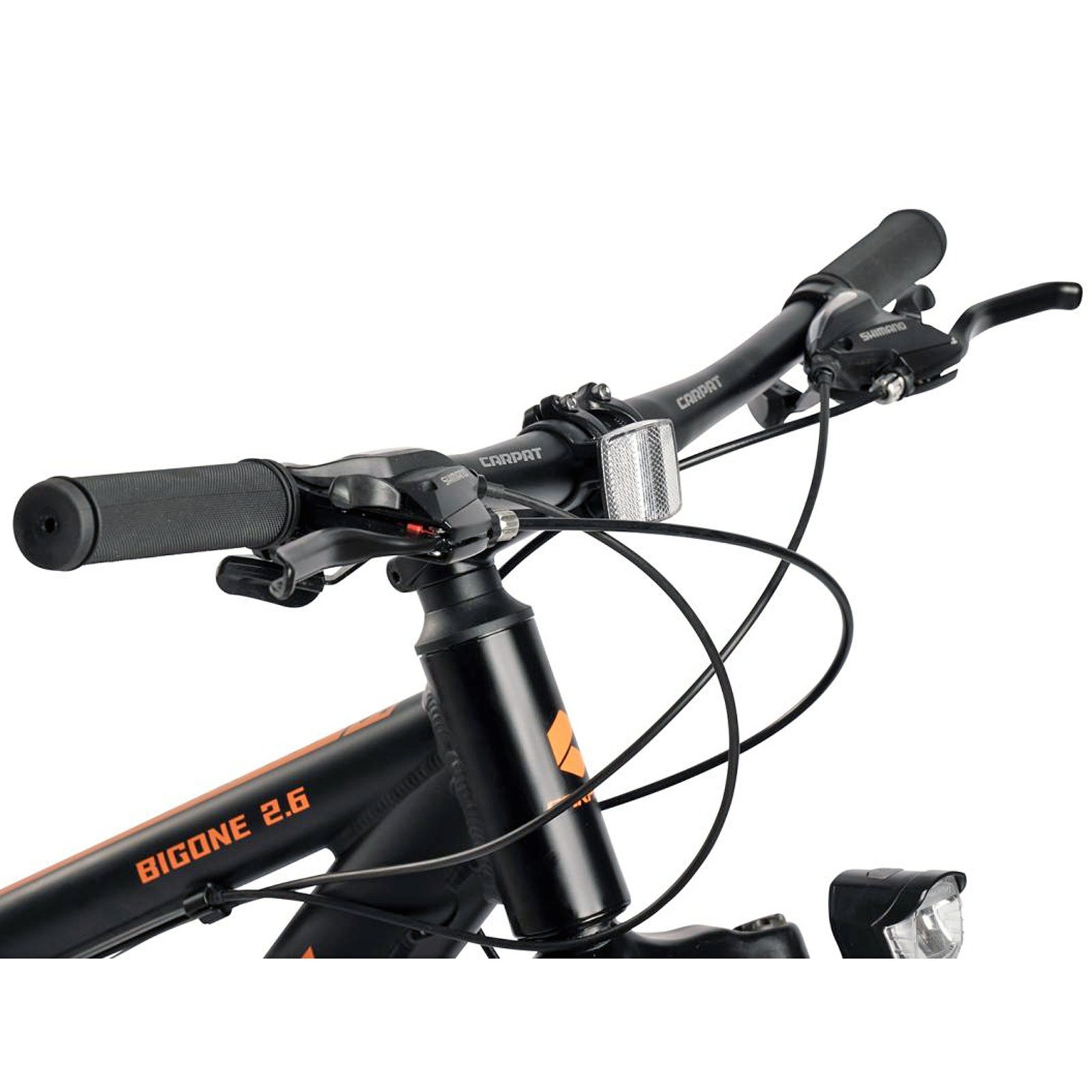 Bicicleta Fat Bike 26" CARPAT BigOne 2.6, cadru aluminiu 18", manete secventiale, frane disc, 16 viteze, negru/portocaliu