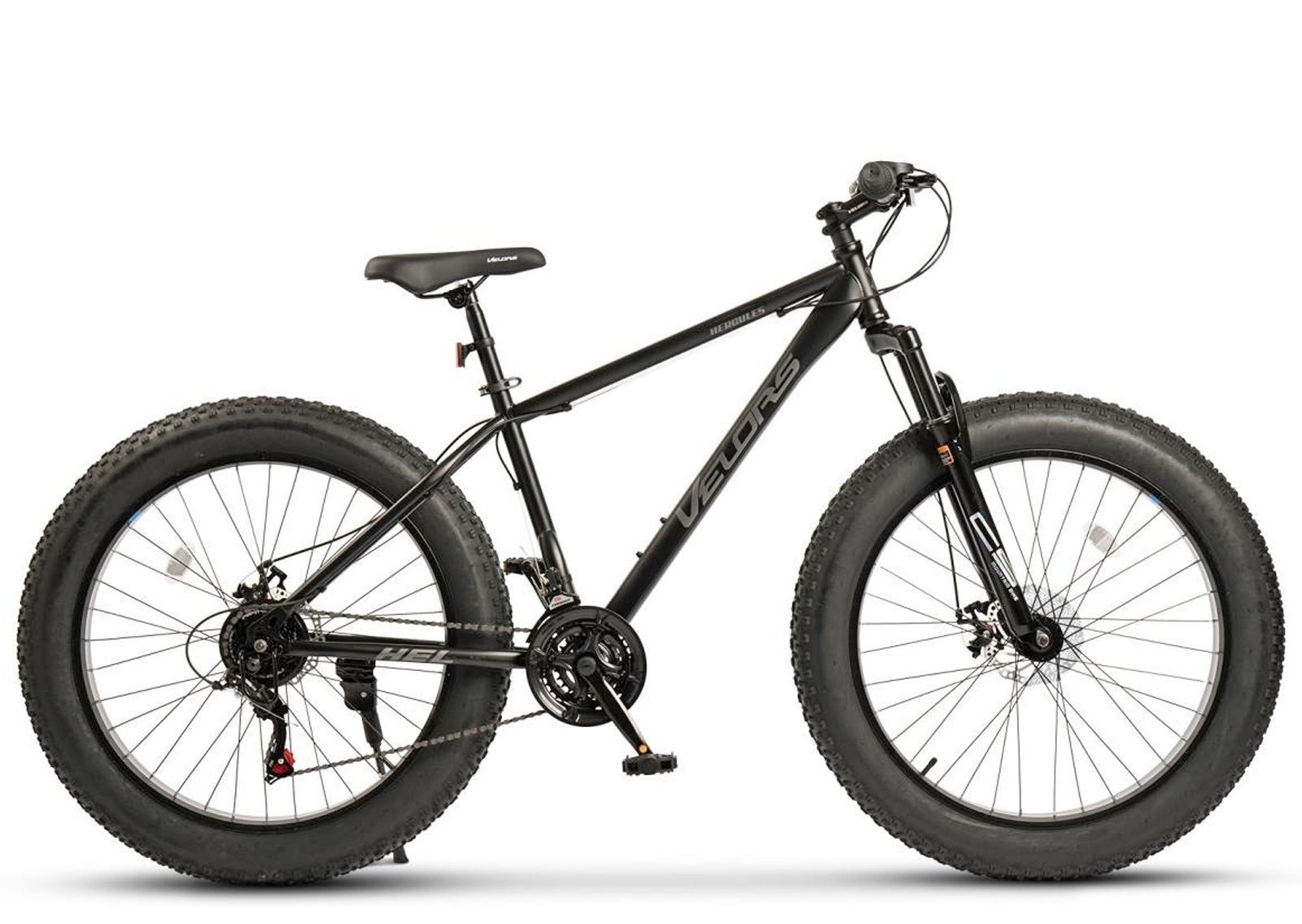 Bicicleta Fat Bike 26" VELORS Hercules, cadru otel 18", manete RevoShift, frane disc, 21 viteze, negru/gri