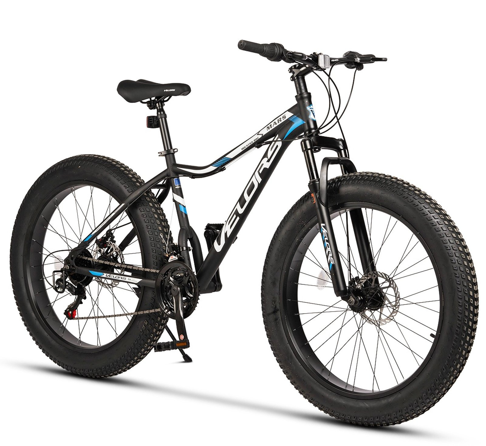 VELORS Bicicleta Fat Bike 26" VELORS Mars, cadru otel 17", manete RevoShift, frane disc, 21 viteze, negru/albastru