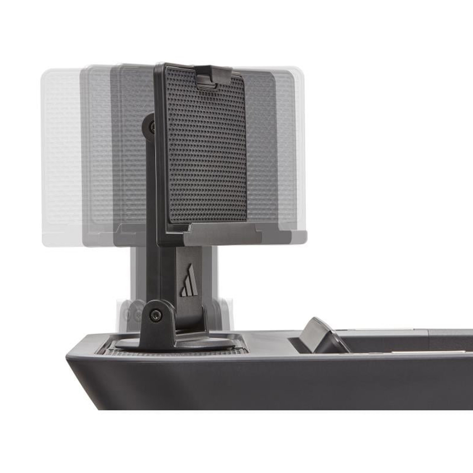 Pentru a te menține distrat pe parcursul fiecărei alergări, T-23 include un suport rotativ integrat pentru tabletă/telefon, cu încărcare USB și difuzoare Bluetooth surround, creând o experiență mai captivantă. Permițându-ți să urmărești emisiunile preferate sau să navighezi prin playlist-urile de antrenament cu ușurință, suportul rotativ este perfect și pentru urmărirea videoclipurilor și aplicațiilor de antrenament, fie în timp ce alergi pe bandă, fie în timp ce te antrenezi lângă ea.