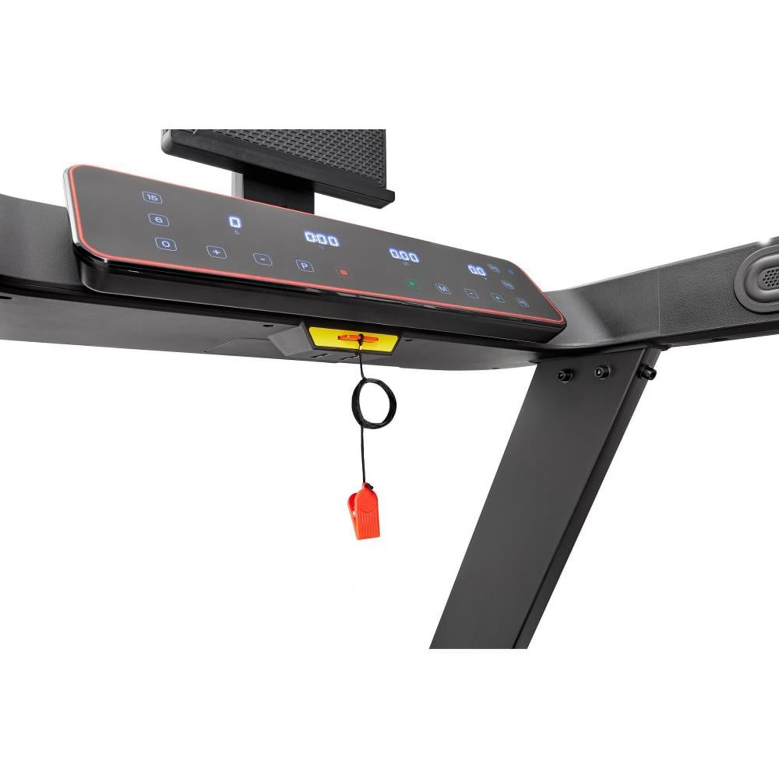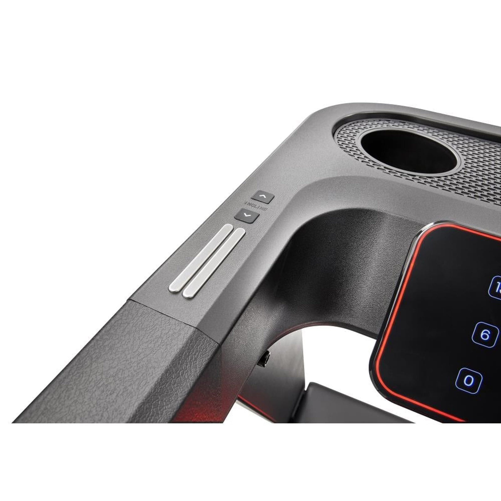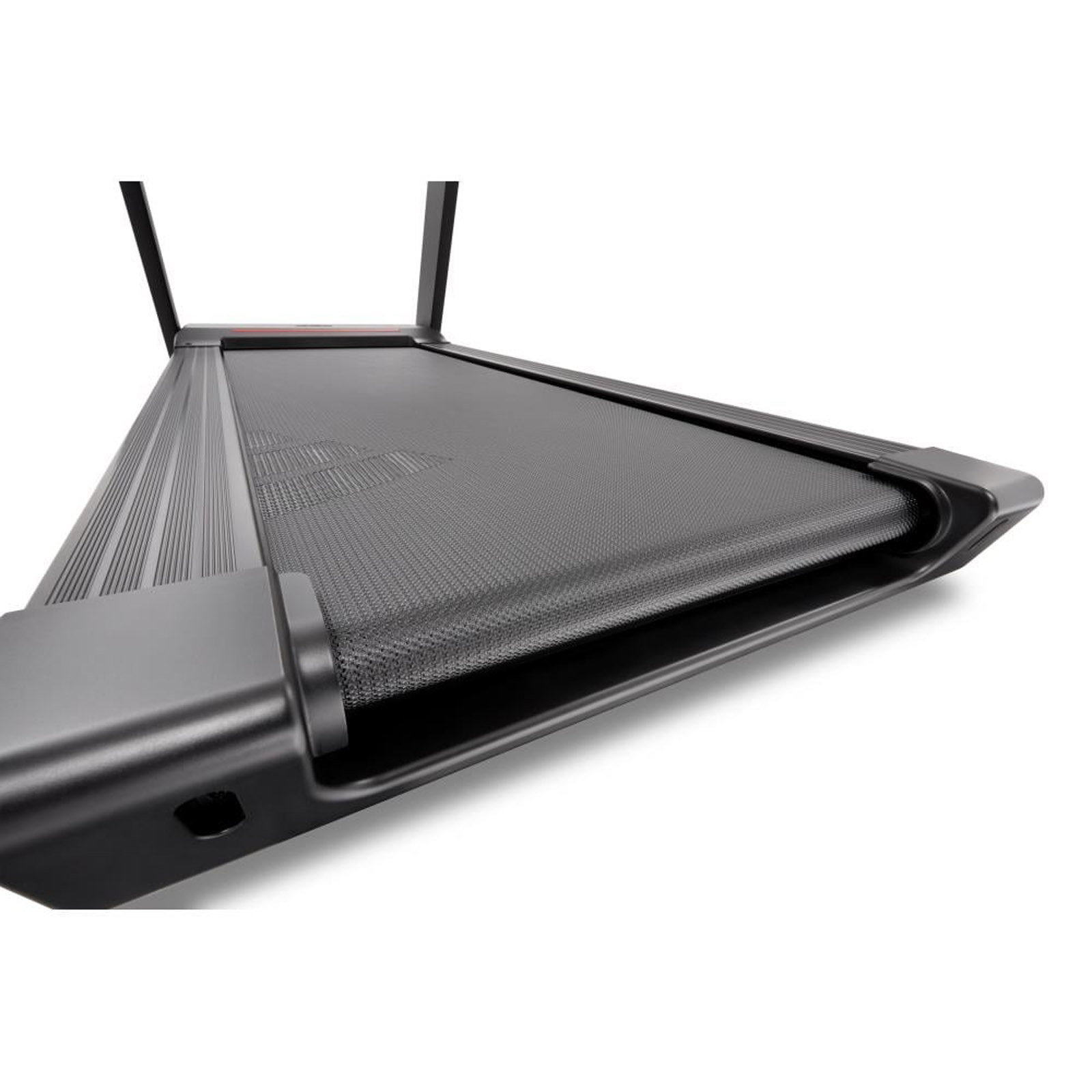 Completată cu o consolă aerodinamică și o margine LED roșie din seria Ultra, T-23 afișează date de performanță în timp real printr-o interfață clară și intuitivă. Oferind feedback pentru viteză, timp, distanță, calorii, puls și înclinare, banda de alergare afișează, de asemenea, datele ritmului cardiac în timp real prin intermediul senzorilor integrați în mânere.