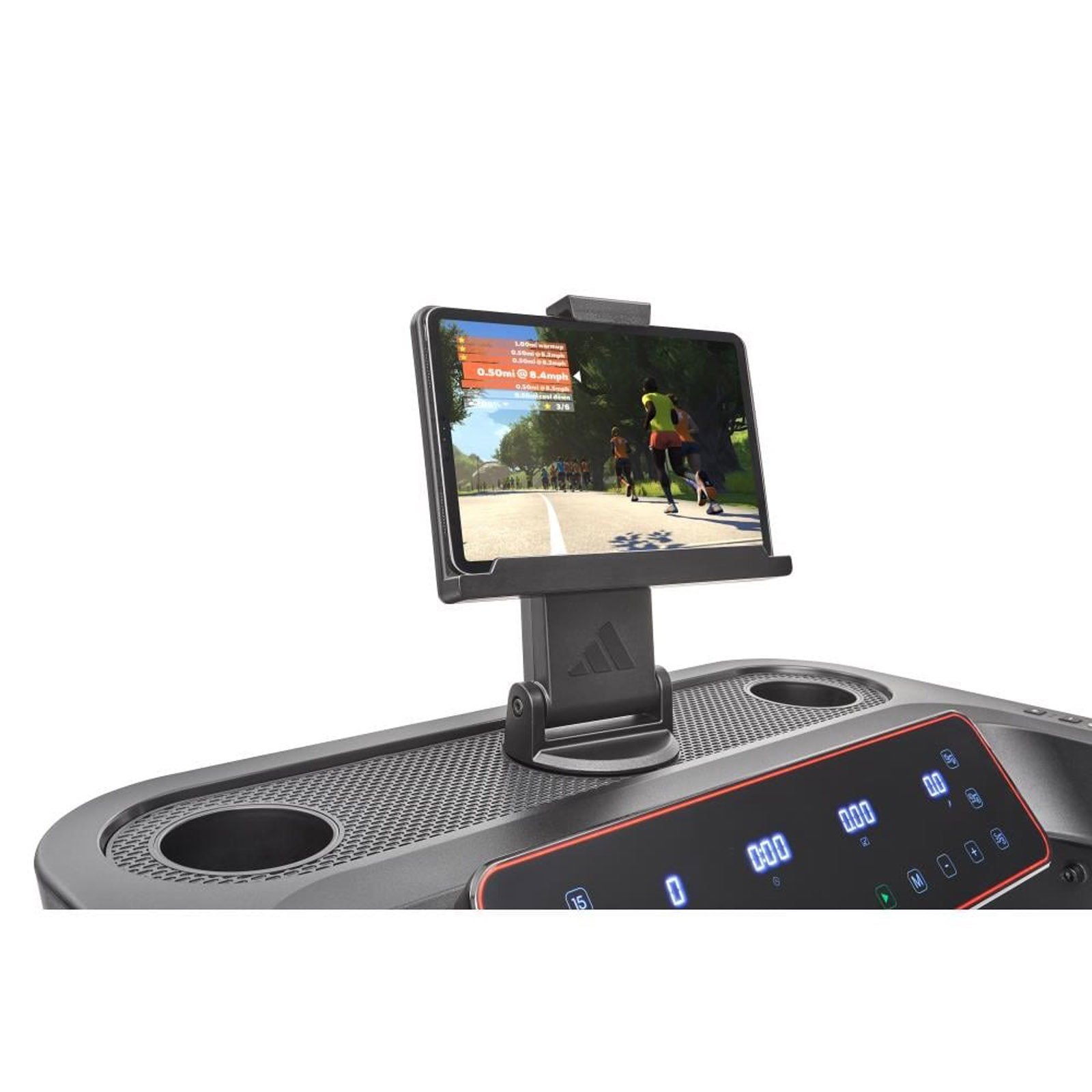 Combinând aplicatia Adidas Console+ cu banda de alergat, ai acces la comunitatea globală de alergare. Compatibilitatea cu Zwift îți permite să experimentezi o rețea online interactivă și captivantă, în timp ce cucerești terenuri virtuale. Console+ se sincronizează, de asemenea, cu Kinomap, permițându-ți să-ți eliberezi spiritul de explorator alergând pe trasee reale, acceptând provocări și concurând cu prietenii.