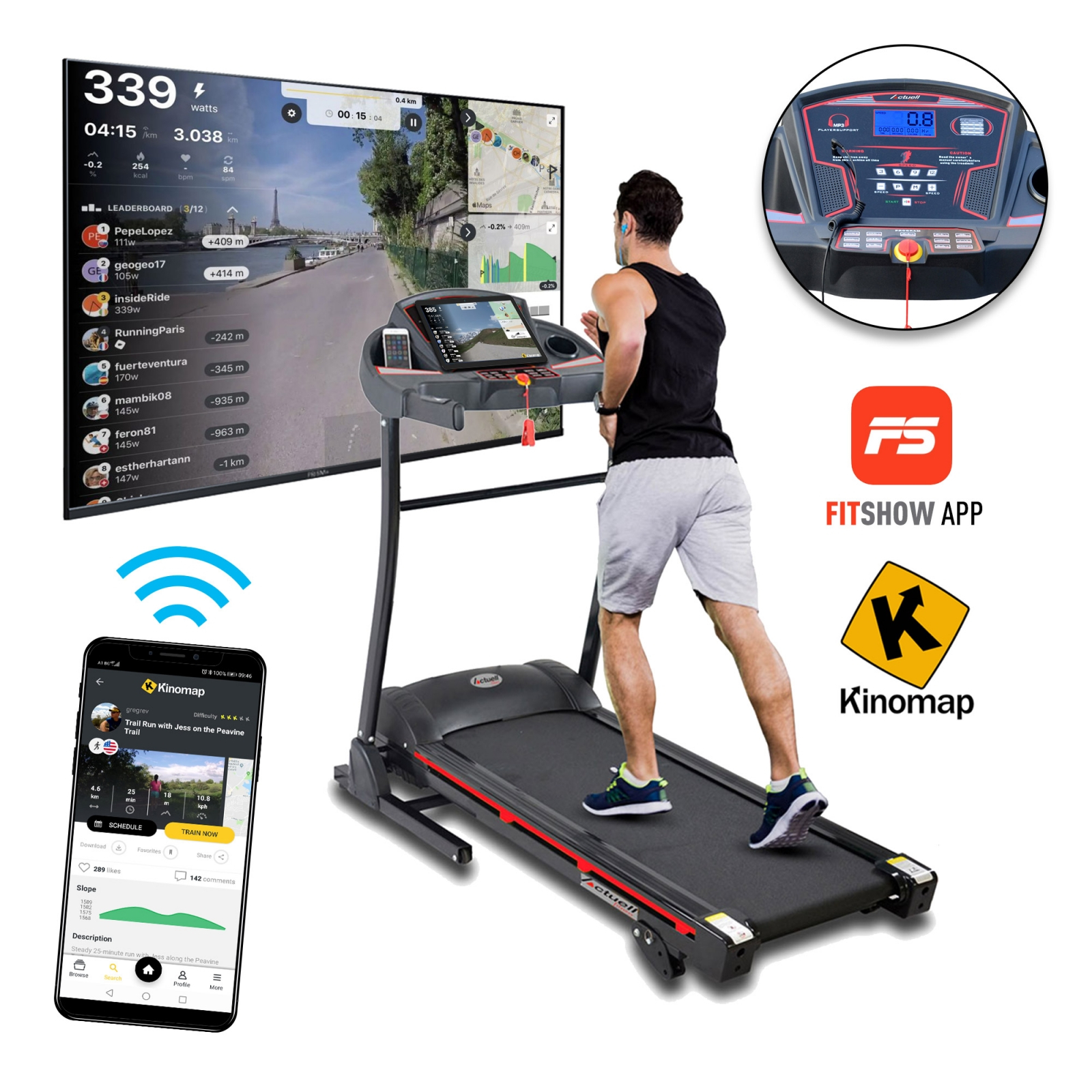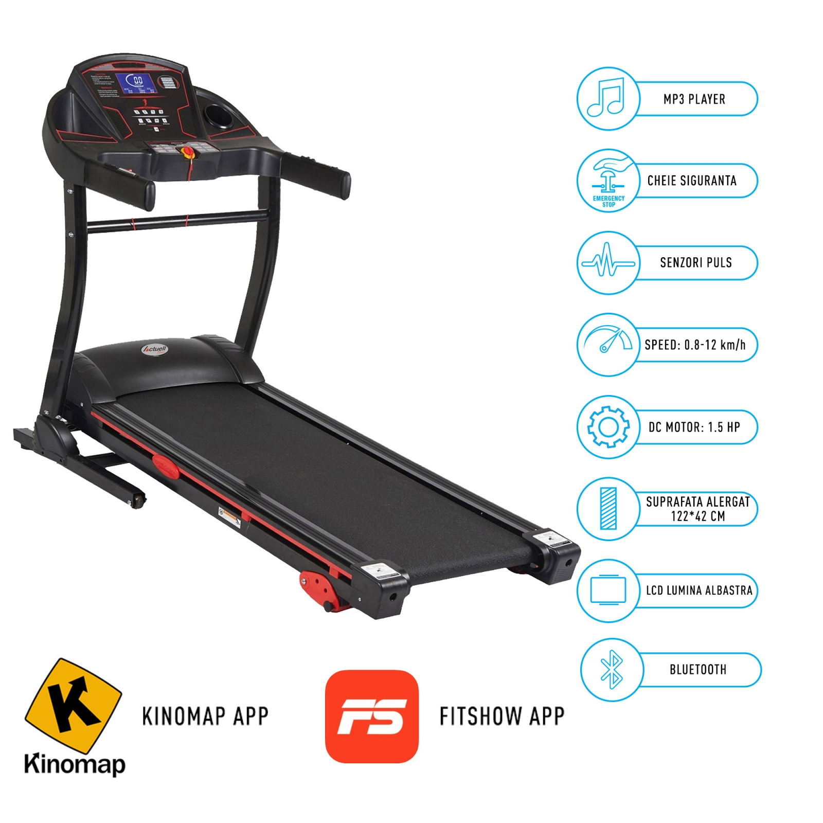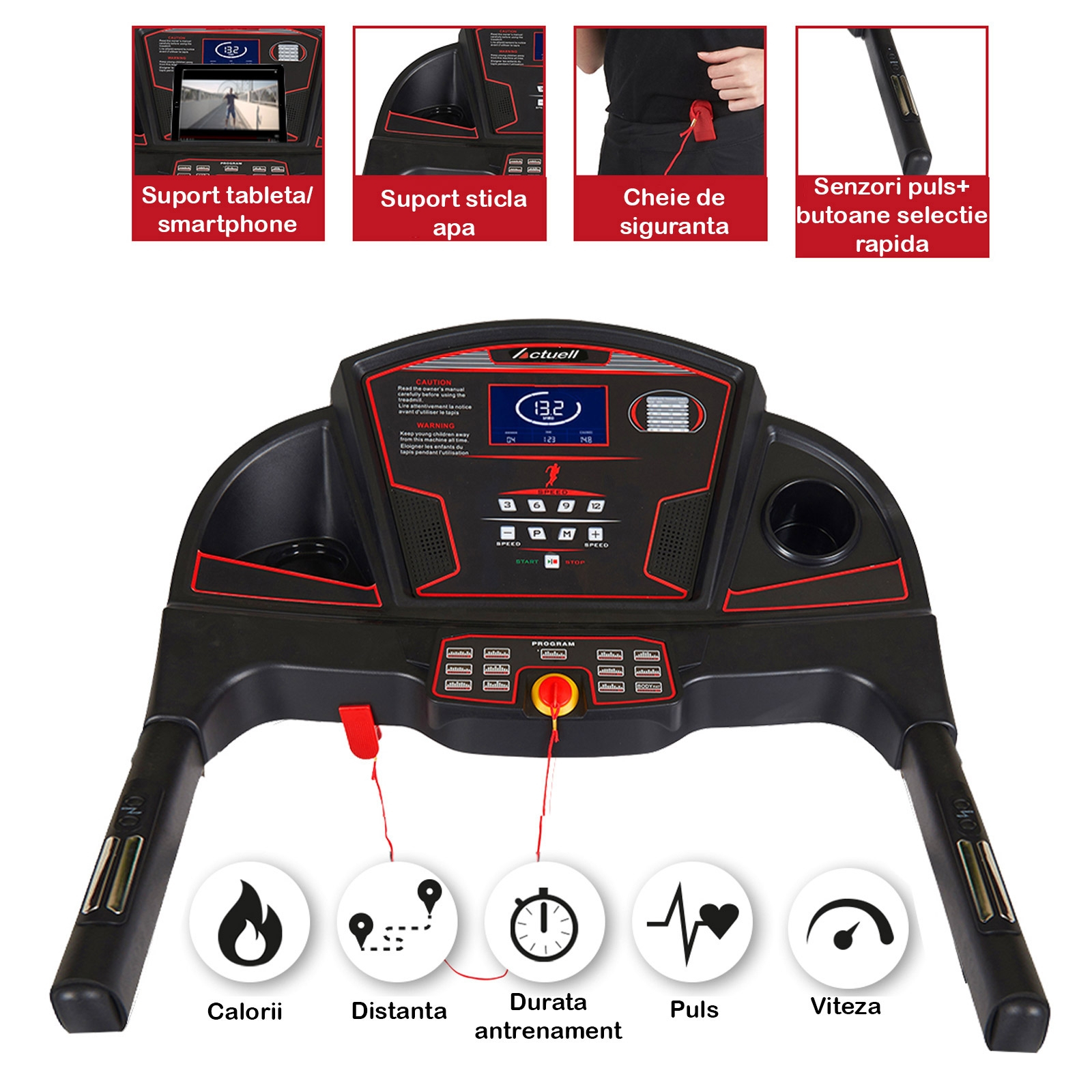 Banda de alergare electrica Actuell t2000i, bluetooth, FitShow, Kinomap, putere maxima 3CP, greutatea maxima a utilizatorului 110kg, senzori puls manual, port MP3