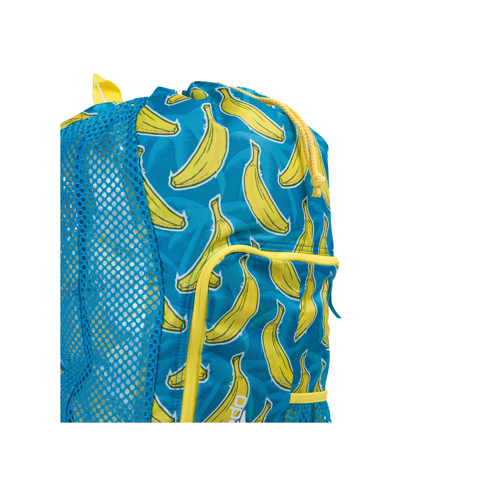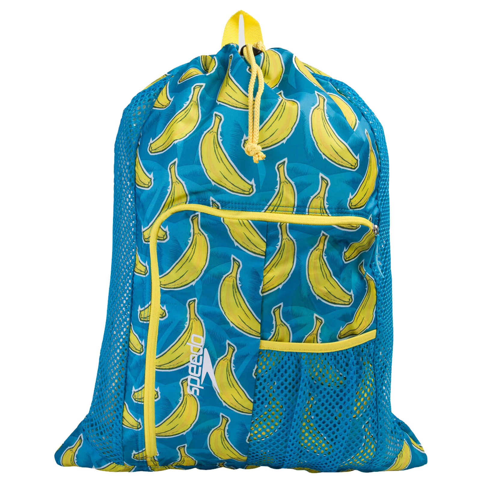 Saculet de plasa pentru accesorii Speedo DeLuxe albastru/galben; Potrivit pentru depozitarea echipamentului de inot; Bretele pentru purtarea in spate; Fermoar frontal pentru depozitare suplimentara; Plasa pentru scurgerea apei si uscare rapida; Dimensiuni: Lungime: 610 mm; Latime: 432 mm; Capacitate: 33L.