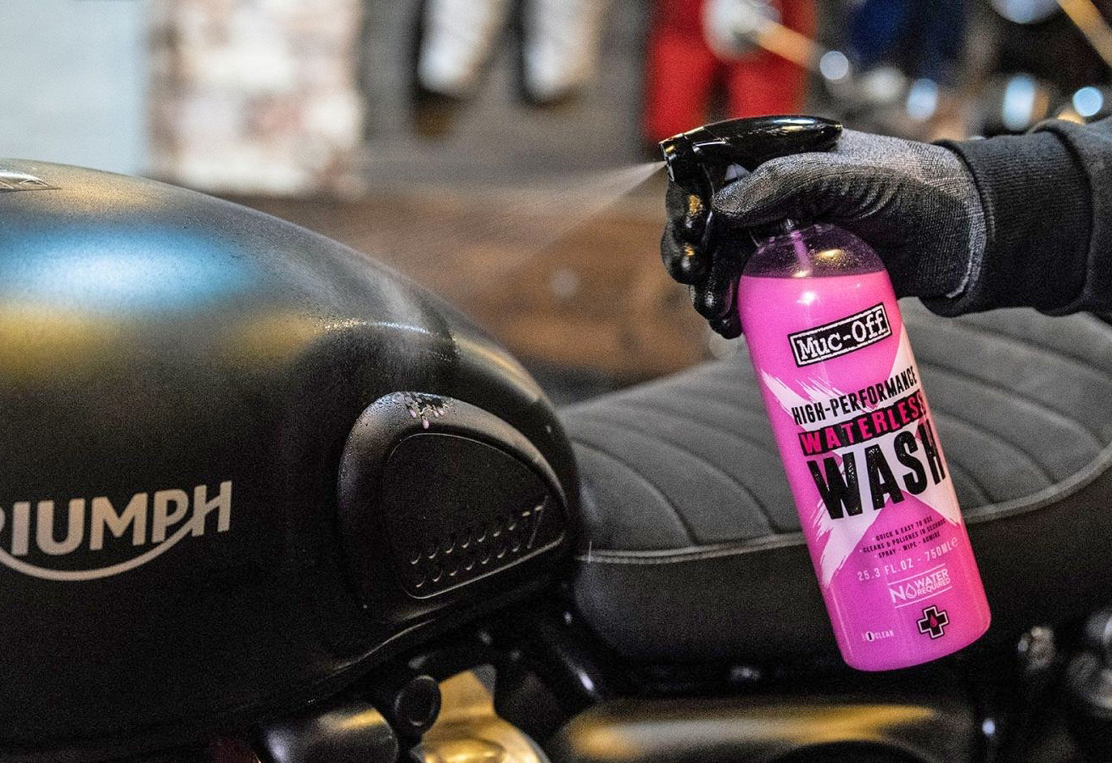 Muc-Off Waterless Wash este un spray foarte usor de utilizat, care curata si lustruieste in cateva secunde fara a fi nevoie de apa.