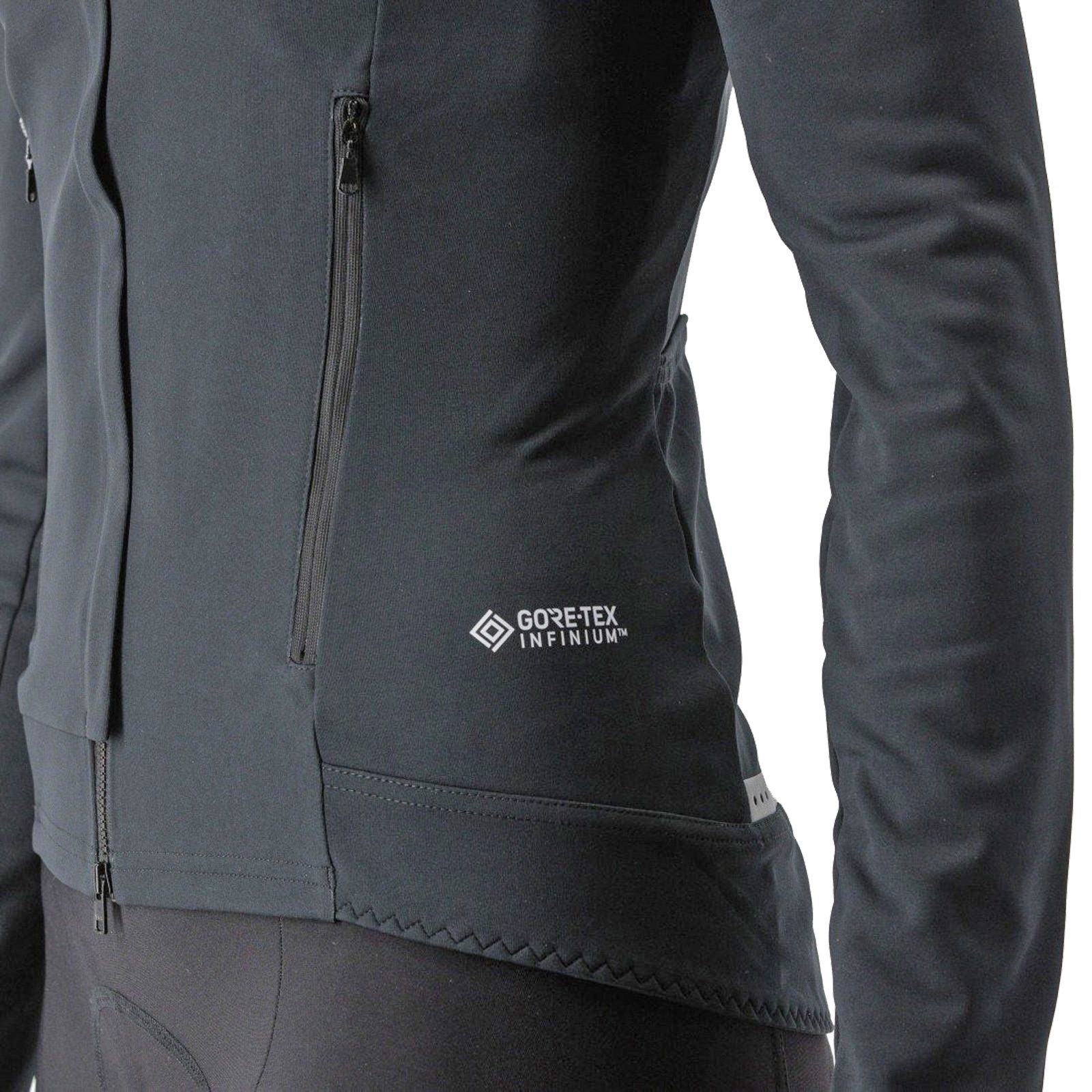 - GORE-TEX INFINIUM™ WINDSTOPPER® 203 Stretch pe suprafețele orientate în spate pentru mai multă elasticitate și respirabilitate