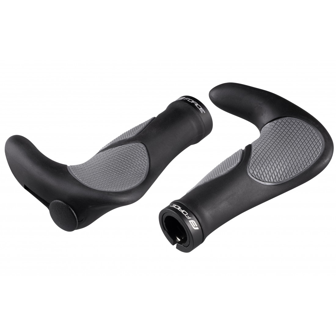 Mansoane din cauciuc cu coarne si dopuri FORCE, in forma ergonomica; Prindere cu colier; Diametru interior: 22,2 mm; Lungime utila a mansonului: 102 mm; Lungime totala: 140 mm; Inaltime coarne: 75 mm; Greutate: 300 g; Ambalate pe card FORCE;