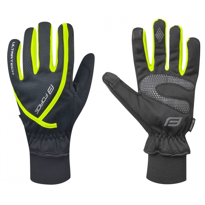 FORCE Manusi ciclism iarna FORCE Ultra Tech, negru/galben fluo, marime S