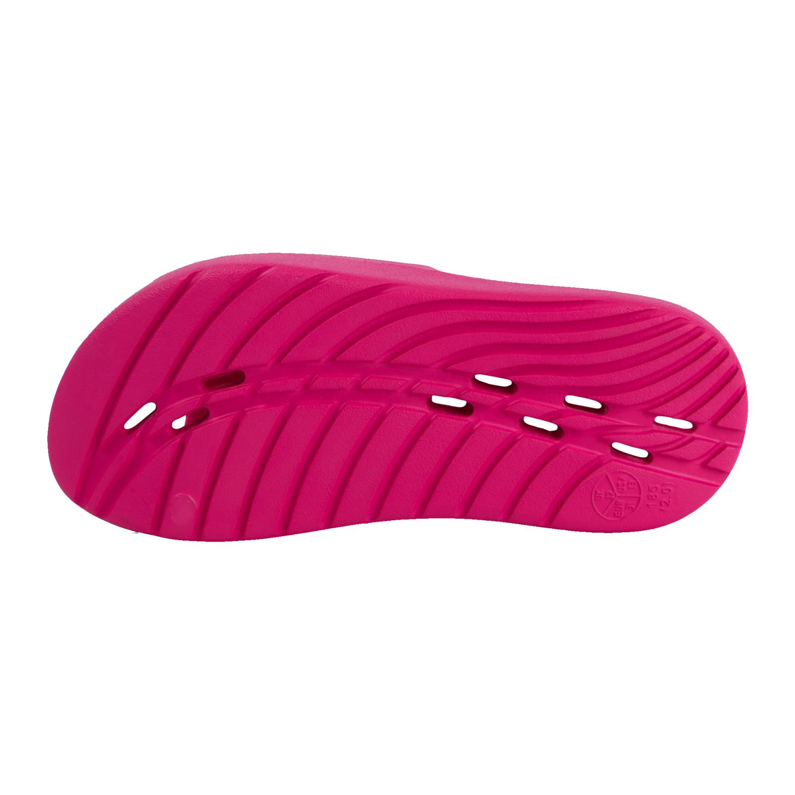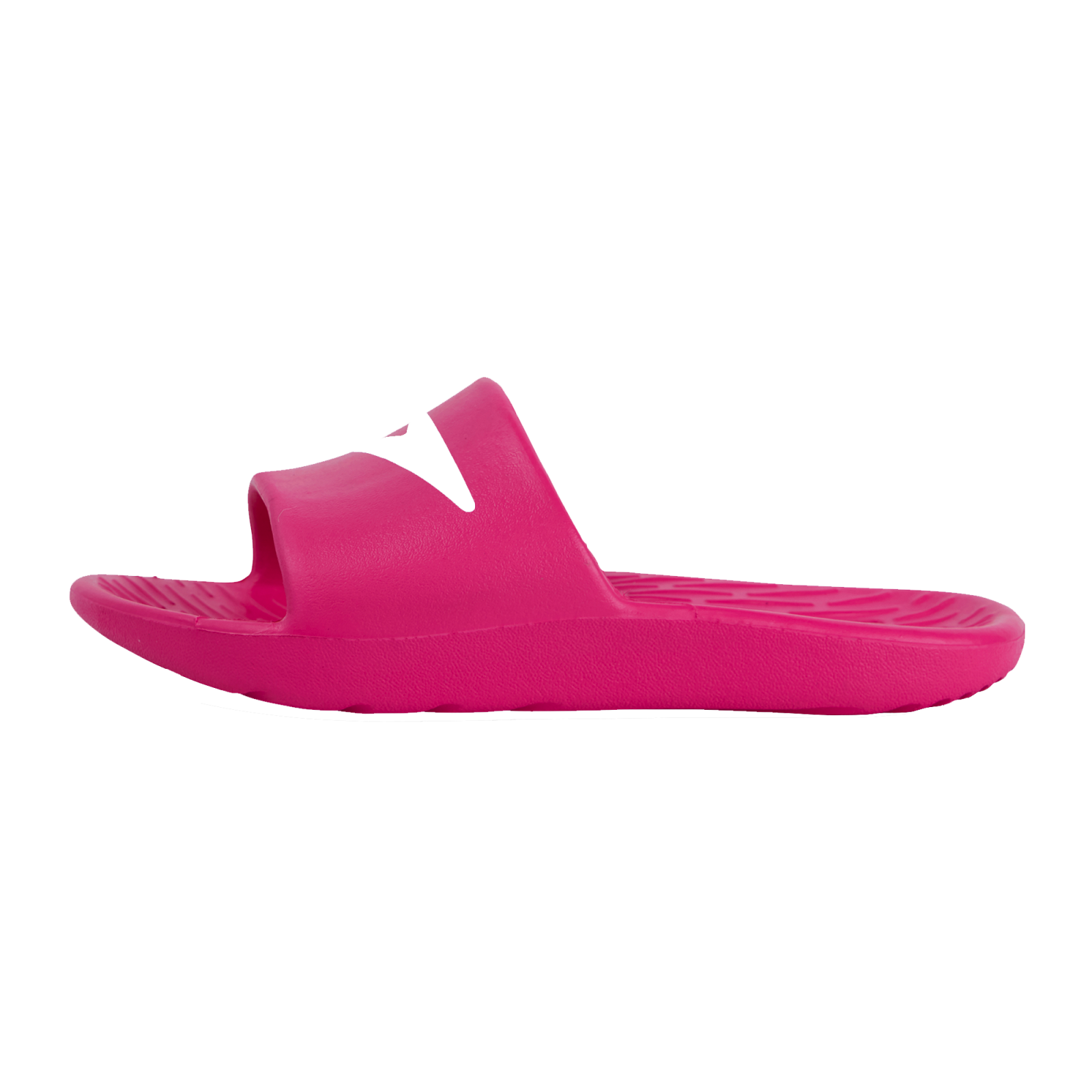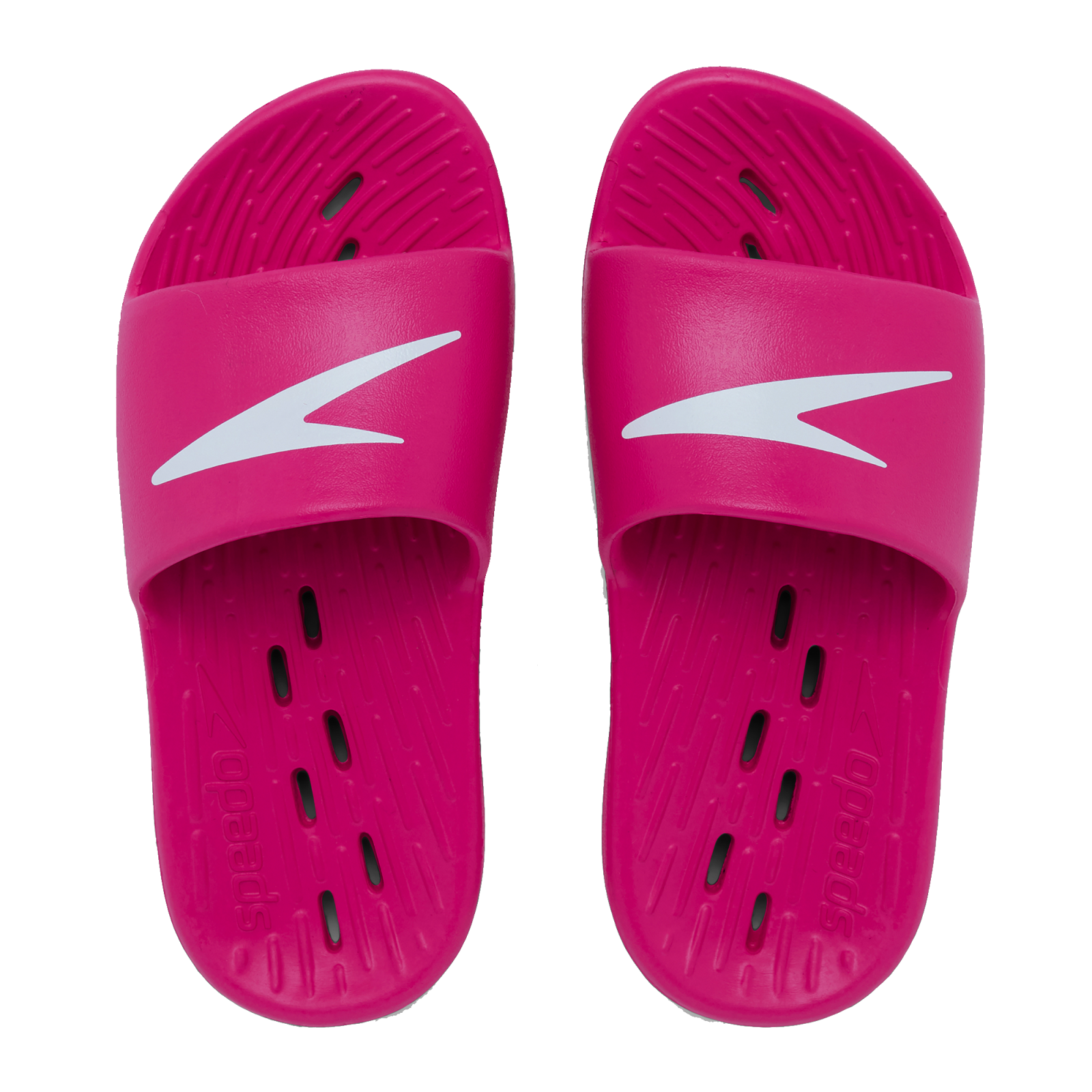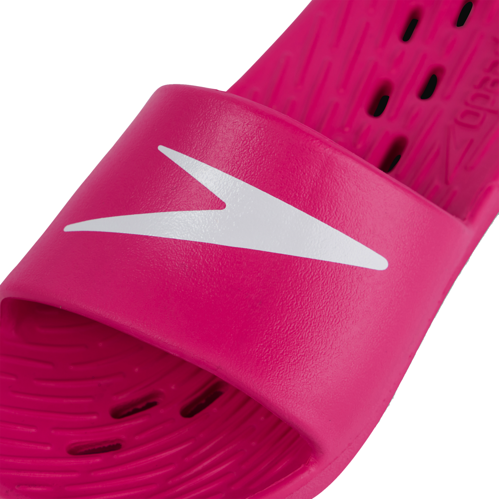 • Papuci copii Speedo Slides JU roz sunt ușori și cu uscare rapidă, cu găuri în talpă pentru a scurge instantaneu apa.