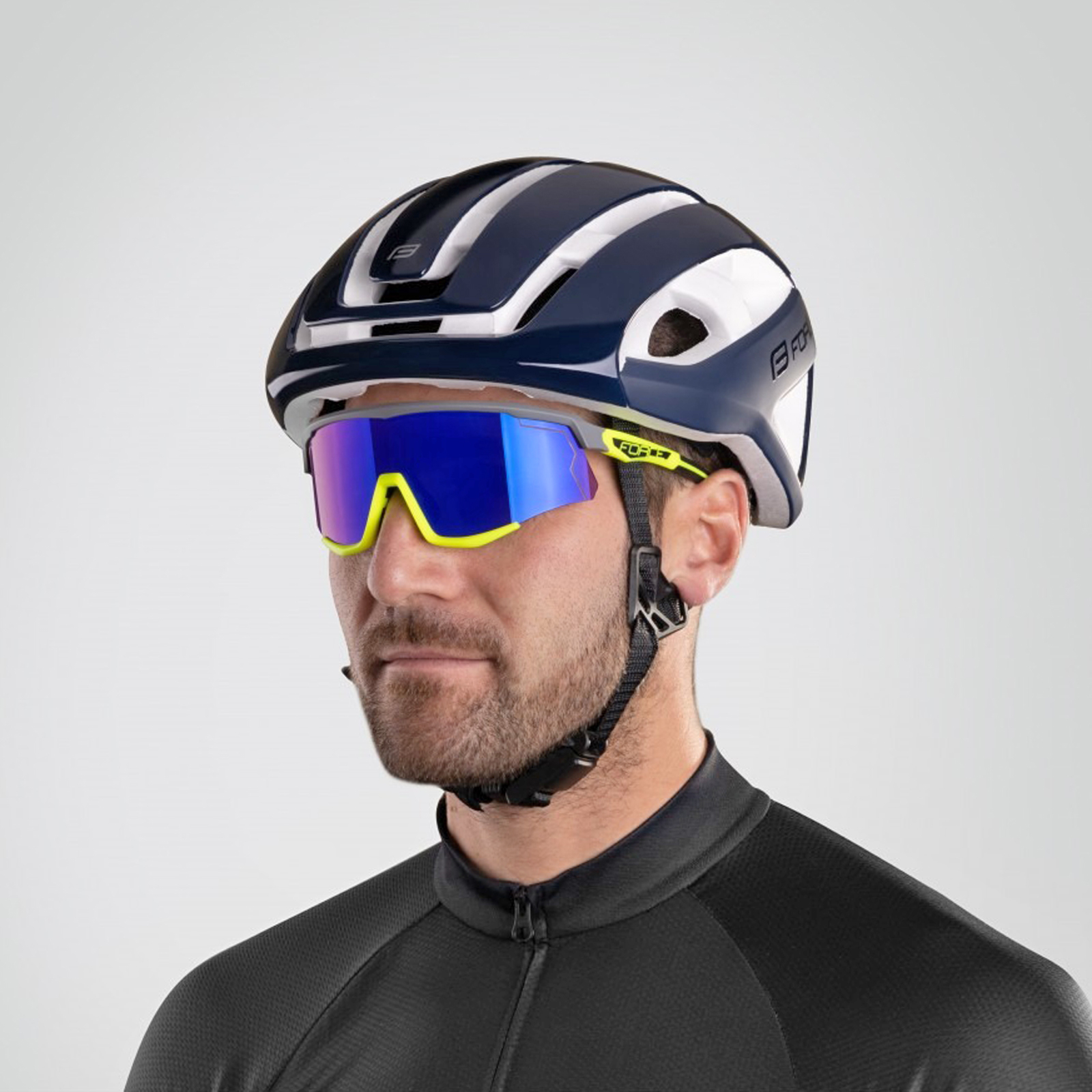 FORCE Ochelari ciclism FORCE Sonic, lentila albastra oglinda, galben fluo