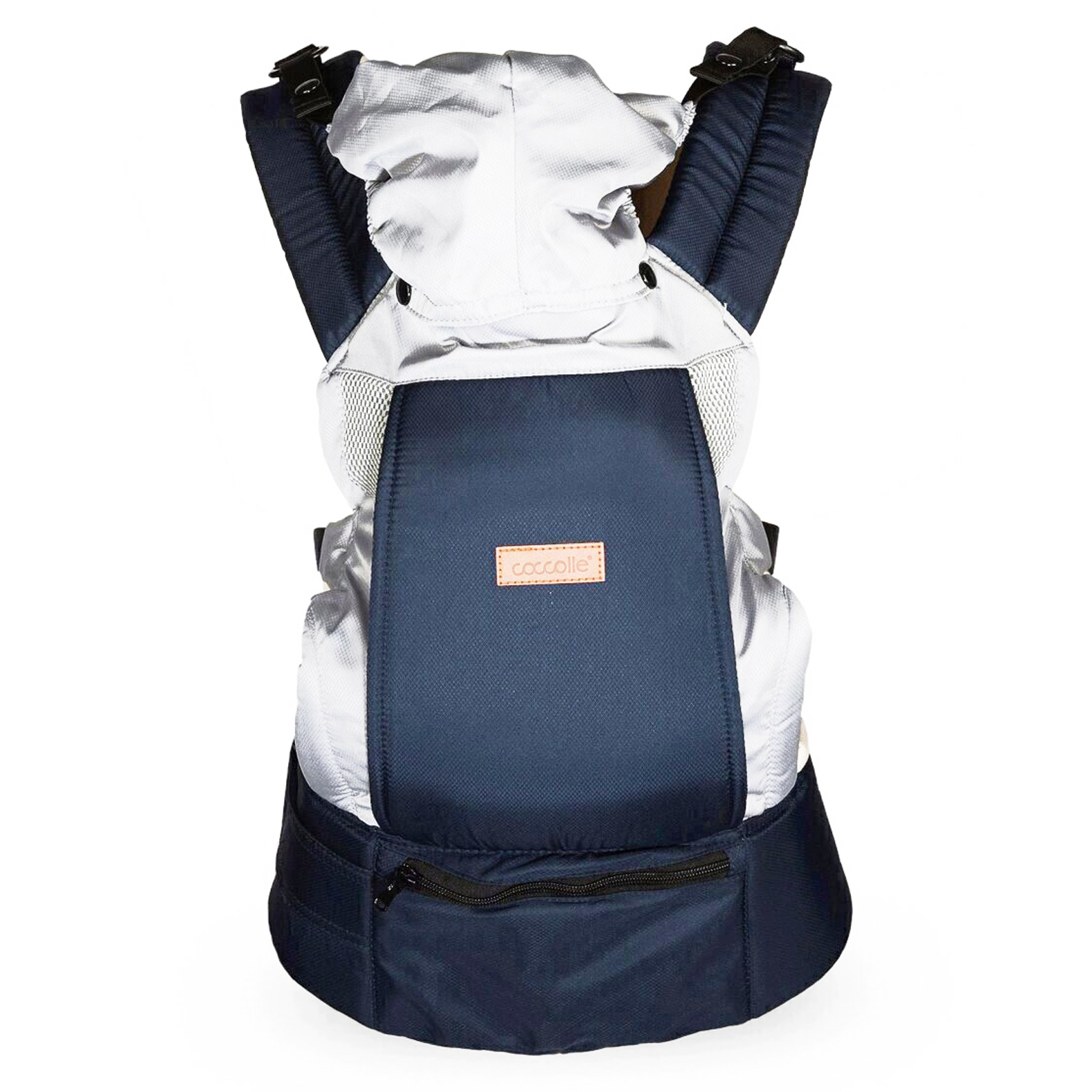 Marsupiul ergonomic Coccolle Gemini are un suport din burete la spate pentru a proteja coloana vertebrala a copilului, iar deschizaturile pentru maini si picioare confera libertatea de miscare a membrelor. Un guler inalt si confortabil sustine capul copilului si il protejeaza de indoirile necontrolate. Materialul tip plasa faciliteaza circulatia aerului. Marsupiul este prevazut cu o gluga detasabila pentru a-l proteja pe bebe in timpul plimbarilor. Acesta este dotat si cu un buzunar frontal. Datorita constructiei speciale, copilul poate sa stea in pozitia broasca, o pozitie care ajuta la dezvoltarea corecta a spatelui si a soldurilor. In ceea ce priveste confortul parintilor, marsupiul este echipat cu centuri, curele si catarame confortabile, captusite cu burete. Acesta are un sistem simplu si practic care va permite sa puneti copilul in marsupiu rapid si cu usurinta.