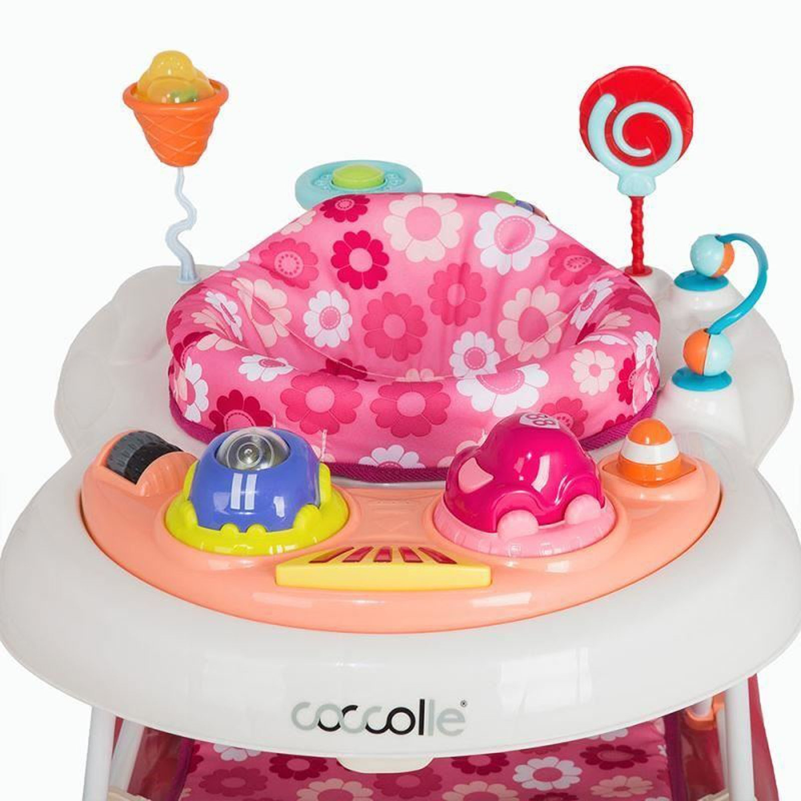 Coccolle Inizio este dotat cu jucarii care ii vor capta atentia bebelusului in timp ce va invata sa mearga.