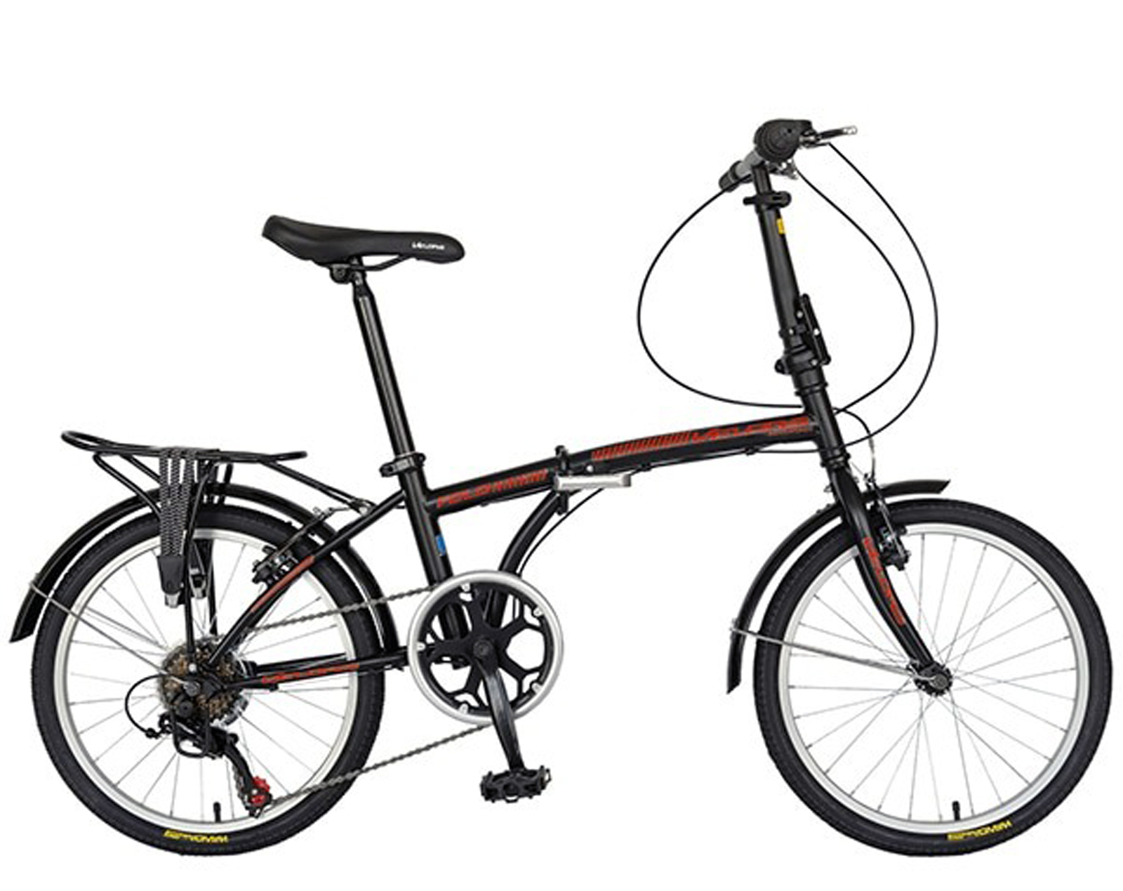 | CADRU | otel Hi-Ten, geometrie specifica folding, marime cadru 330 mm, vopsea lucioasa, stickere aplicate |