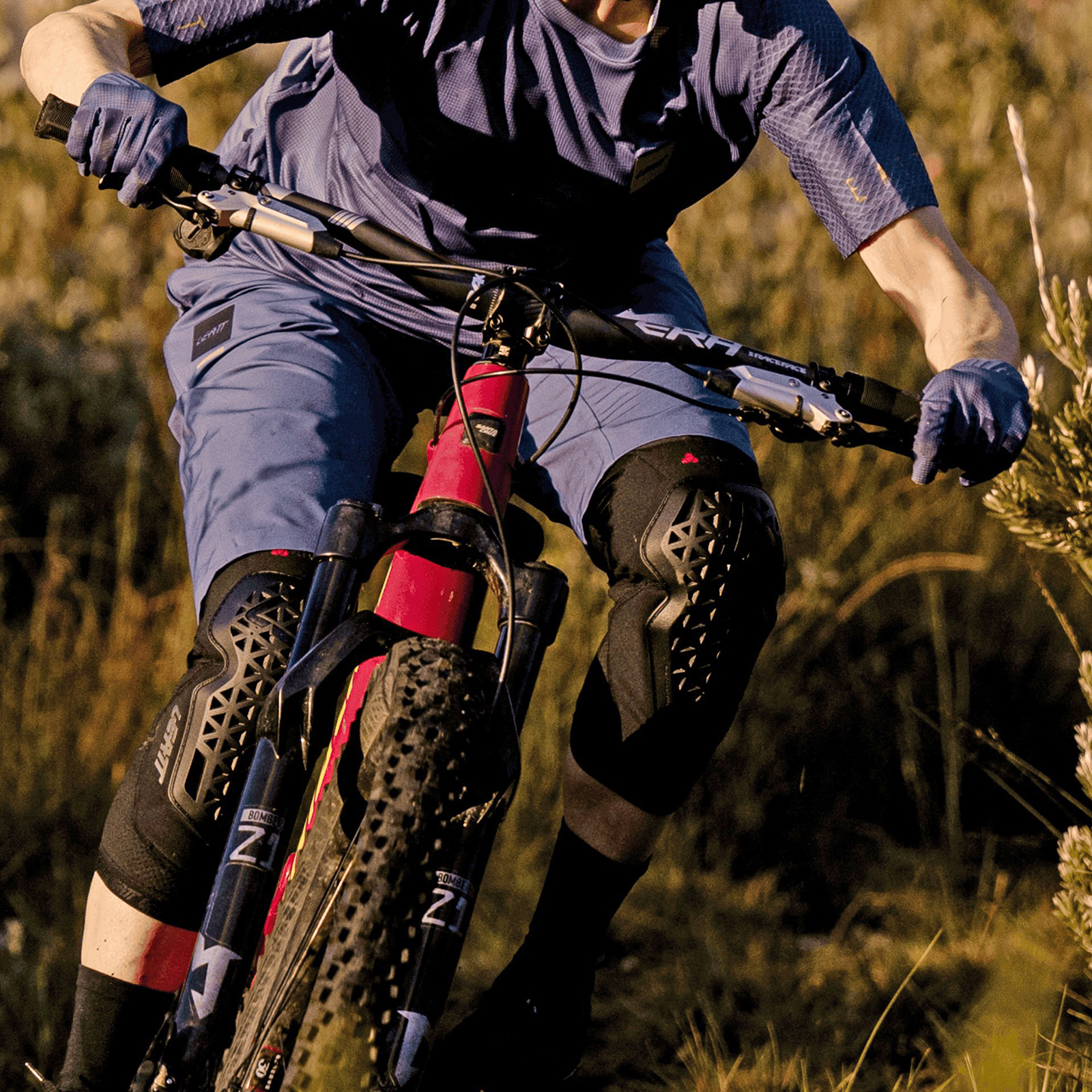 Zona căptușită deasupra genunchiului protejează eficient împotriva loviturilor de ghidon, iar întăririle laterale oferă acoperire suplimentară în teren tehnic.