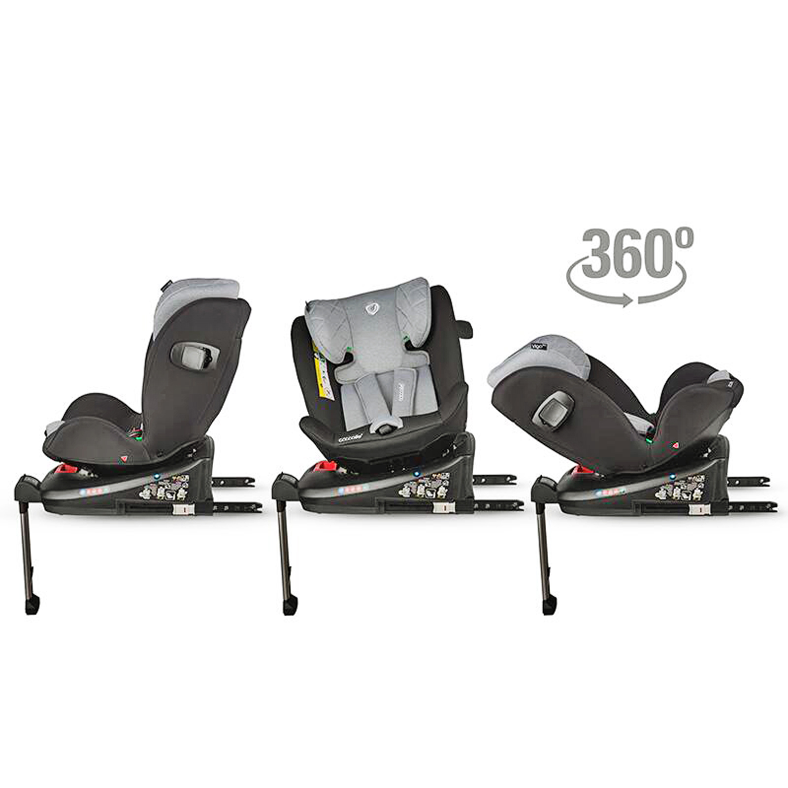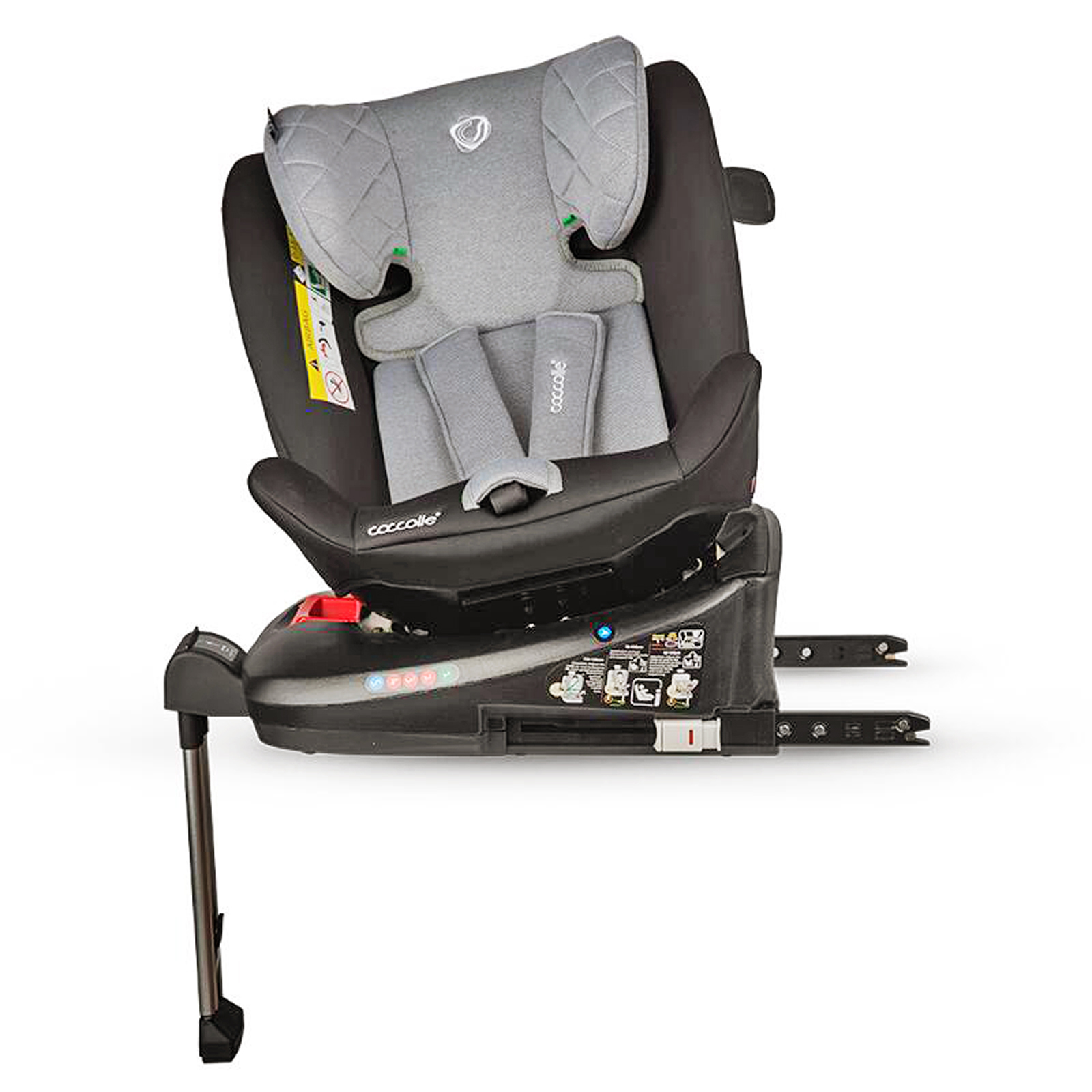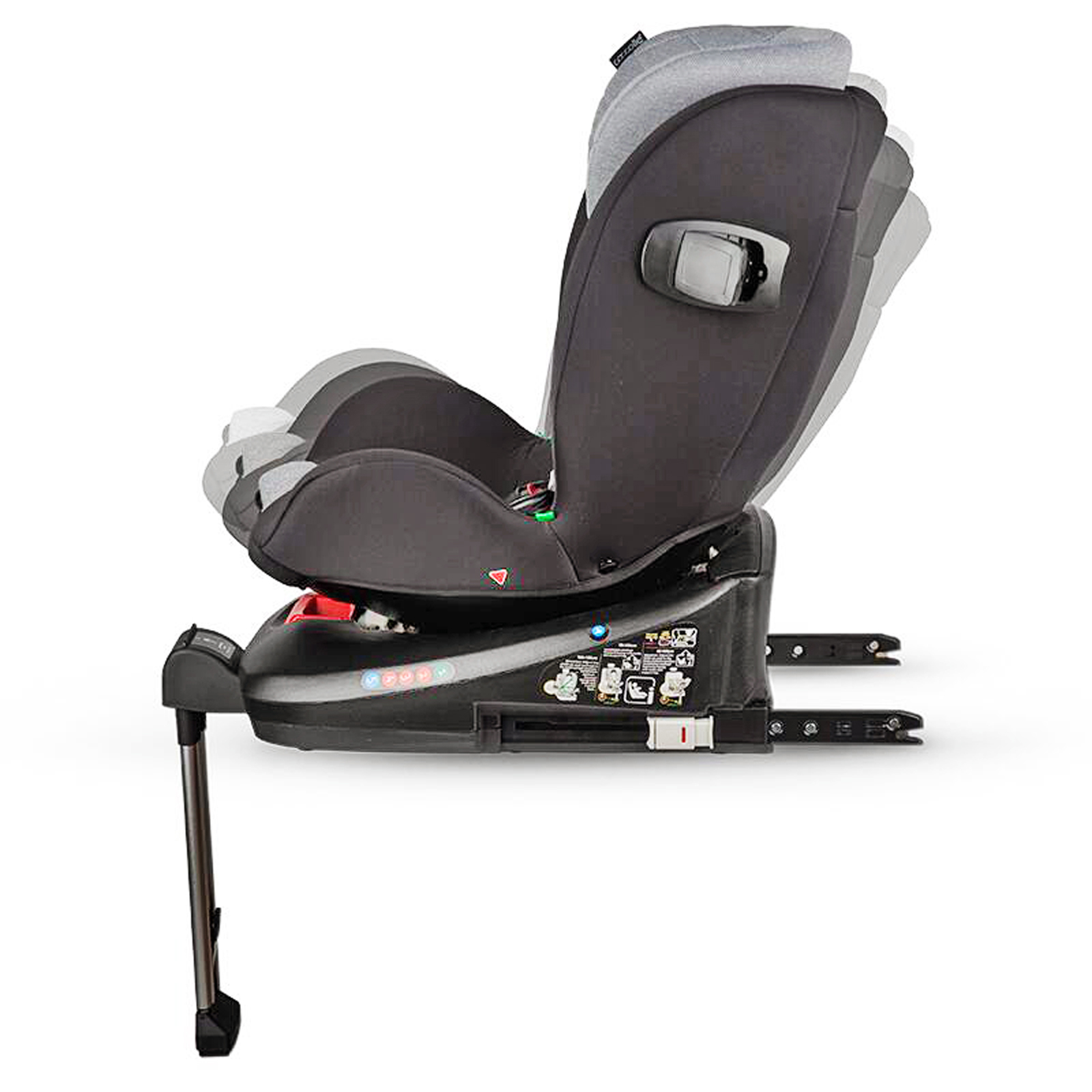 Gratie bazei rotative, aveti posibilitatea de a va transporta copilul atat cu fata cat si cu spatele la sensul de mers cu o usurinta iesita din comun. Sistemul isofix si piciorul de sustinere nu doar ca asigura protectie deosebita la bordul autoturismului, ci faciliteaza instalarea corecta si rapida a produsului in masina.